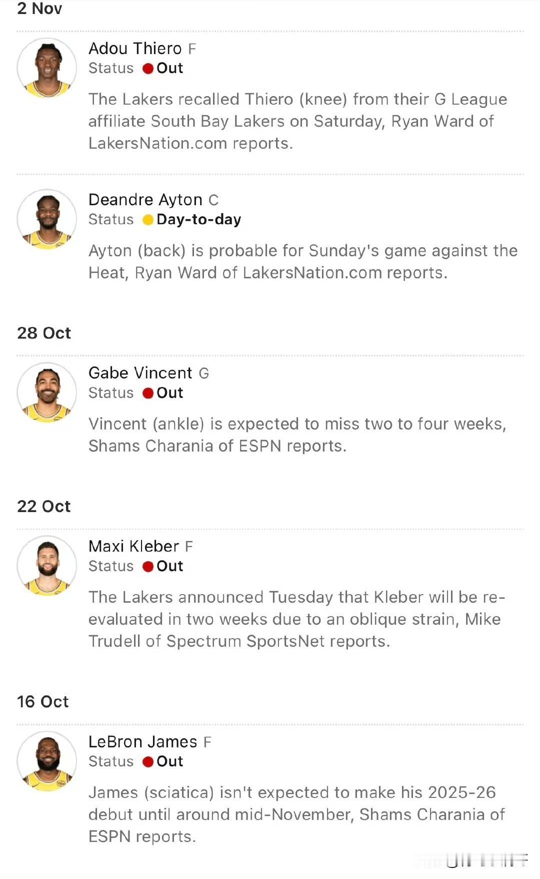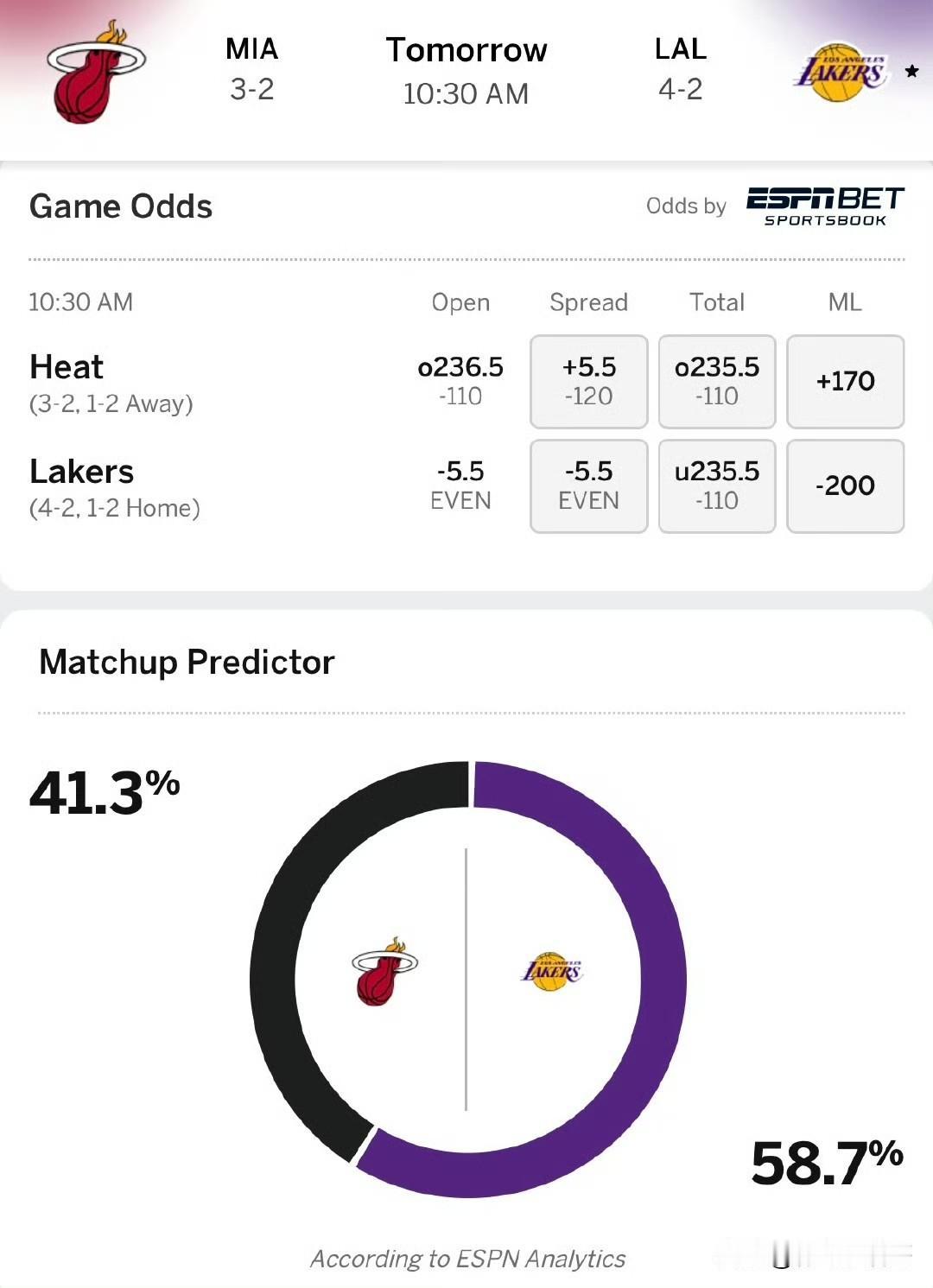 湖人和热火伤病名单!!!热火vs湖人比赛预告,湖人被看好! 北京时间11月3号上午10点半,湖人回到主场了,这一天他们将迎战热火队,这也是双方本赛季的首次交锋,文森特面对老东家,但是很遗憾他无法登场。 目前ESPN给出的比赛预测中,湖人以接近6成的胜率非常被看好,这胜率对湖人来说不低吧,热火魔鬼式训练的球队可不好惹。 湖人方面,艾顿大概率出战,詹姆斯、文森特和可乐杯等人继续缺席比赛。 热火方面,鲍科比还没有确定,预计是可以打,而罗齐尔和希罗等人将缺阵本场比赛。 湖人这么高的胜率,也是给出了主场-5.5的数据,看来湖人最近的连胜让他们跟被认可啊,那就一起期待明天的比赛吧! 湖人赛程 湖人阵容名单 湖人阵容 湖人