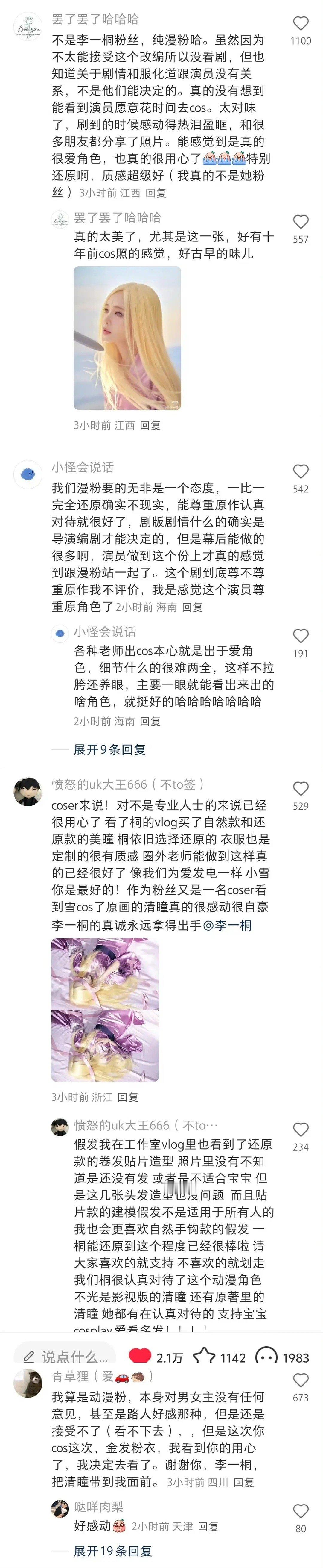 金发李一桐 李一桐cos漫版清瞳被ie假装剧粉给冲了,剧方营销不够,李一桐自费cos宣传剧,结果成毅粉丝在官博转发下🐴女主把官博🐴删了,而且在🫘发了后几个小时都是好评,一些“剧粉”突然在同一时间点集中去攻击,装“剧粉”冲女主只会赶跑真正的剧粉,认真剧宣认真营业的李一桐没惹[摊手][摊手]李一桐cos动漫版清瞳