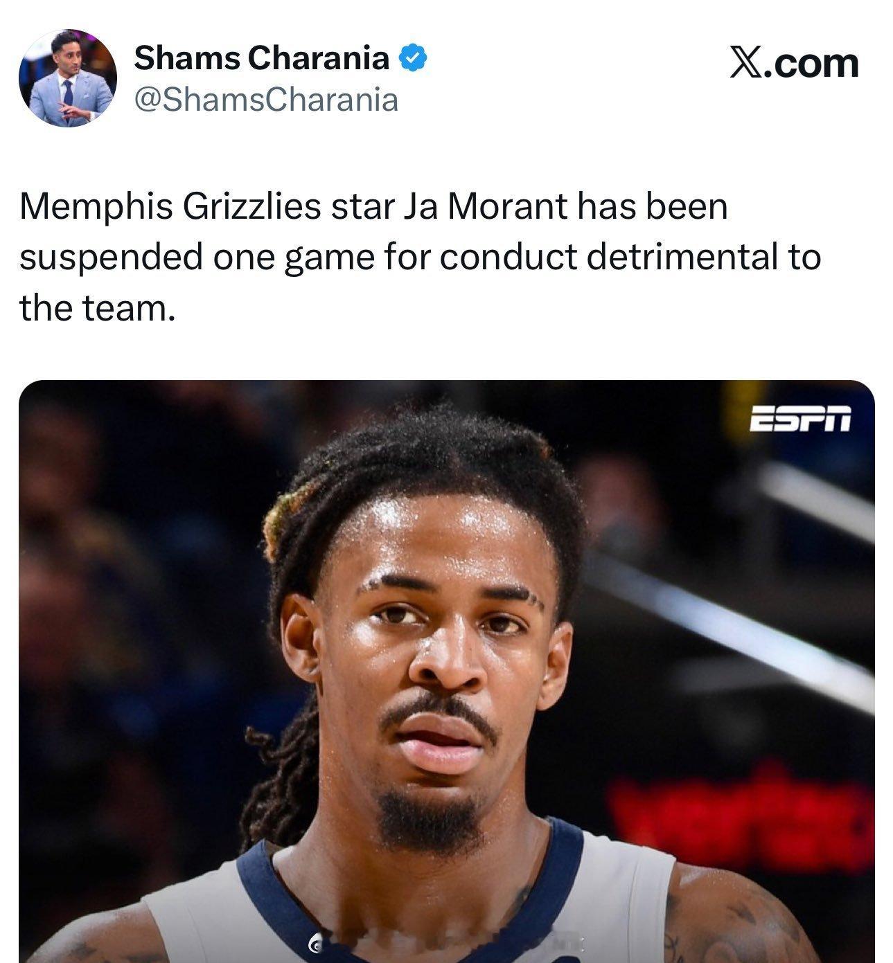 灰熊和莫兰特都希望克服紧张局势,Ja应该会在明天对阵活塞队的比赛中复出。莫兰特活