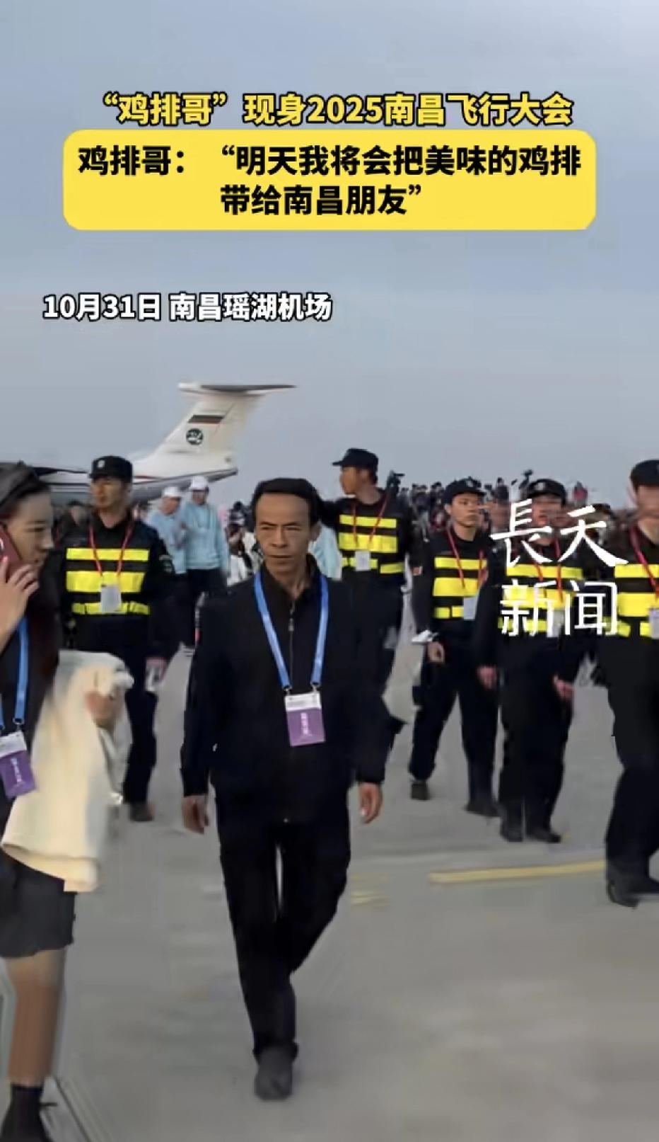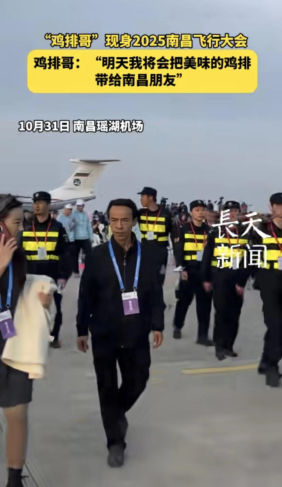 从景德镇做鸡排,因对顾客爆金句互动,所以意外走红了。 如今鸡排哥,也是个有头有脸的人物了,受邀到南昌的飞行大会参观。就鸡排哥这个网红流量大咖身份,身边的待遇也是蛮高的,还配备了安保团队来护驾,这一看妥妥就是个正厅级干部的待遇啊。