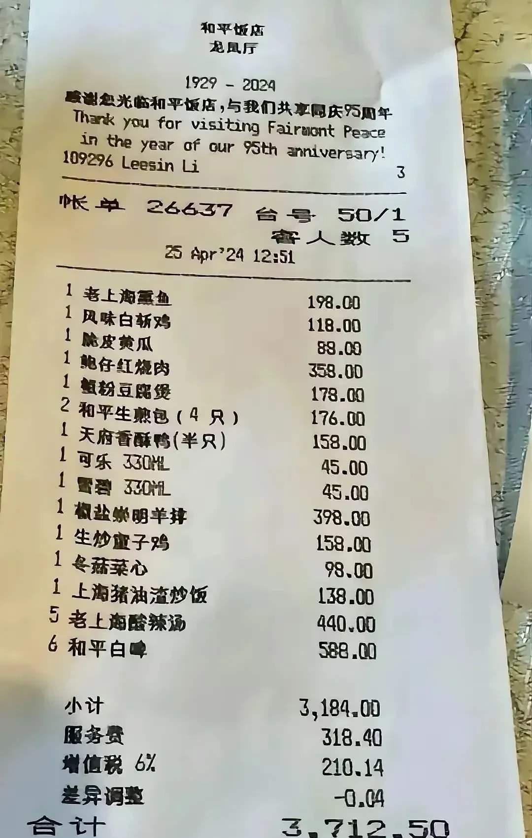 上海和平饭店,有谁吃过? 今天我朋友去了趟上海的和平饭店吃了一顿,他说真够奢侈的,一顿饭吃了将近四千,我问都吃了啥? 一看菜单,确实不得了,一盘脆皮黄瓜88元,一个菜心98元,不知道这顿饭有没有吃饱? 有网友说,去那边吃饭的,不要在乎什么价格,而是体验一把有钱人的满足感。 大家会不会去那边吃?