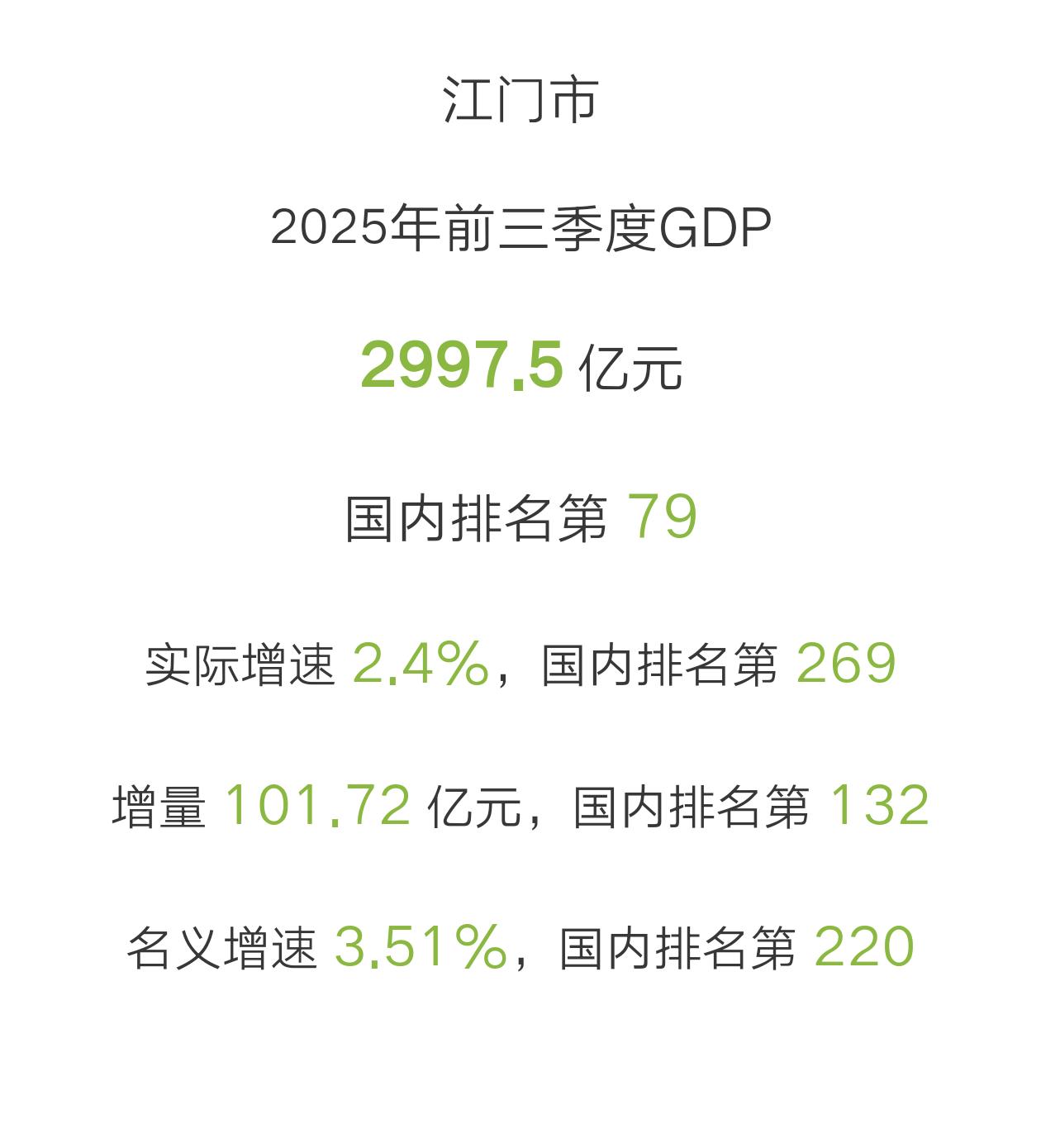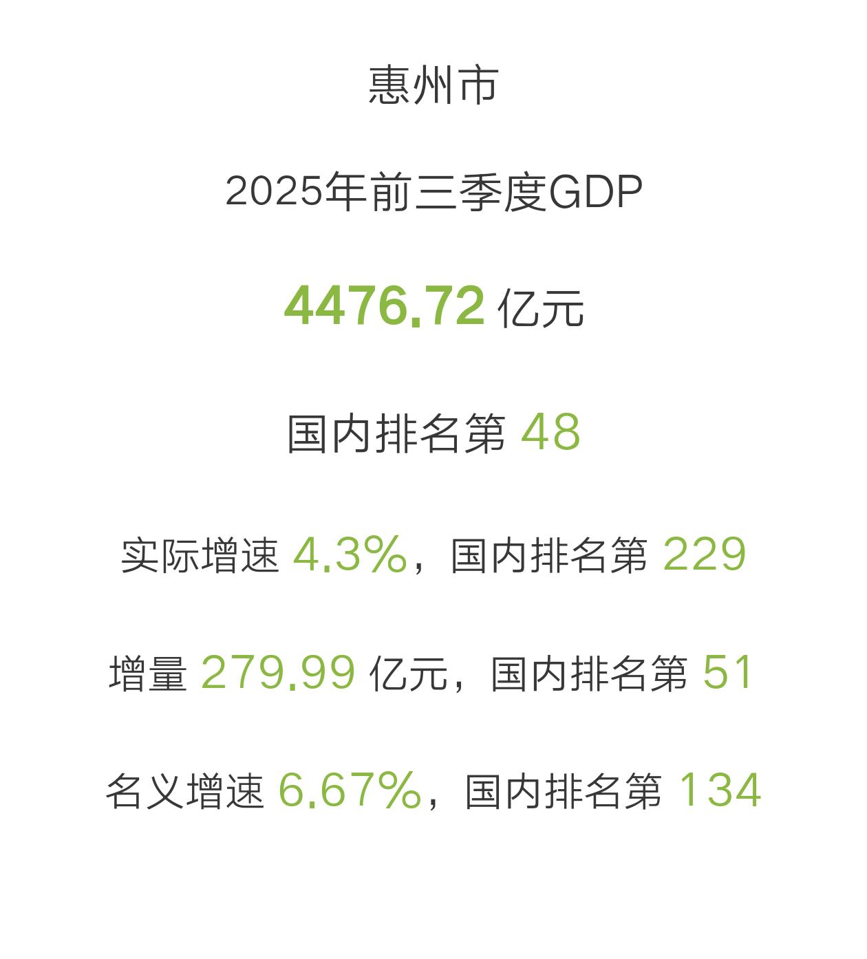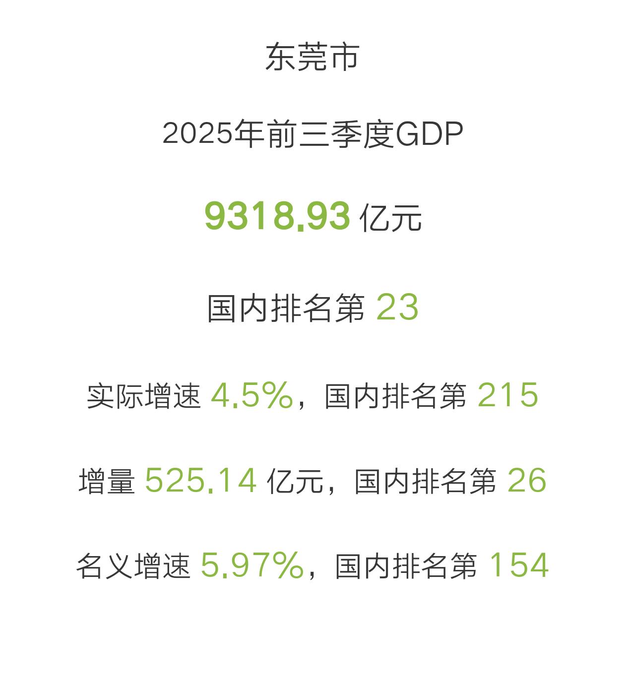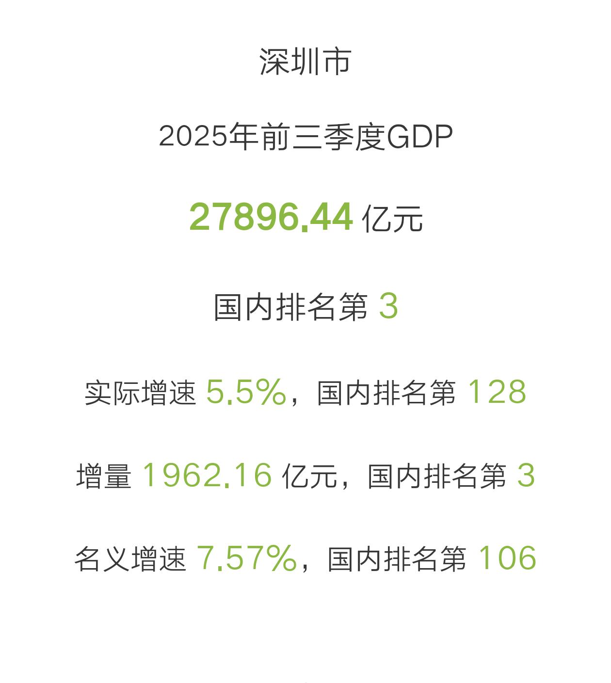 当下,广东珠西发展遇到了很大困难。2025年前三季度,佛山实际增长1.6%,名义增长3.06%;珠海实际增长2.8%,名义增长4.21%;江门实际增长2.4%,名义增长3.51%。中山表现最好,实际增长3.6%,名义增长6.55%。 相较而言,珠江东岸发展要好一些。深圳作为龙大老大,依然稳健,实际增速5.5%,名义增长7.57%;东莞实际增长4.5%,名义增长5.97%;惠州实际增速4.3%,名义增速6.67%。说实话,东莞、惠州也在艰难推进产业转型升级,但是走在珠西前面。 一快一慢之间,广东经济天平会进一步倒向珠江东岸。 老大哥广州今年表现可圈可点。实际增速持续提升,一季度是3%,二季度是3.8%,三季度是4.1%。名义增速也在5%以上,比去年好了不少。