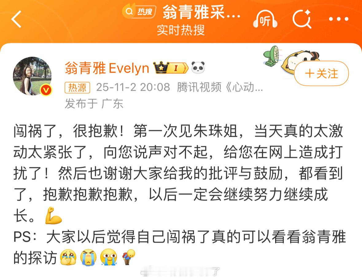 翁青雅对于自己采访翻车的的回应,观感如何?[柯基]