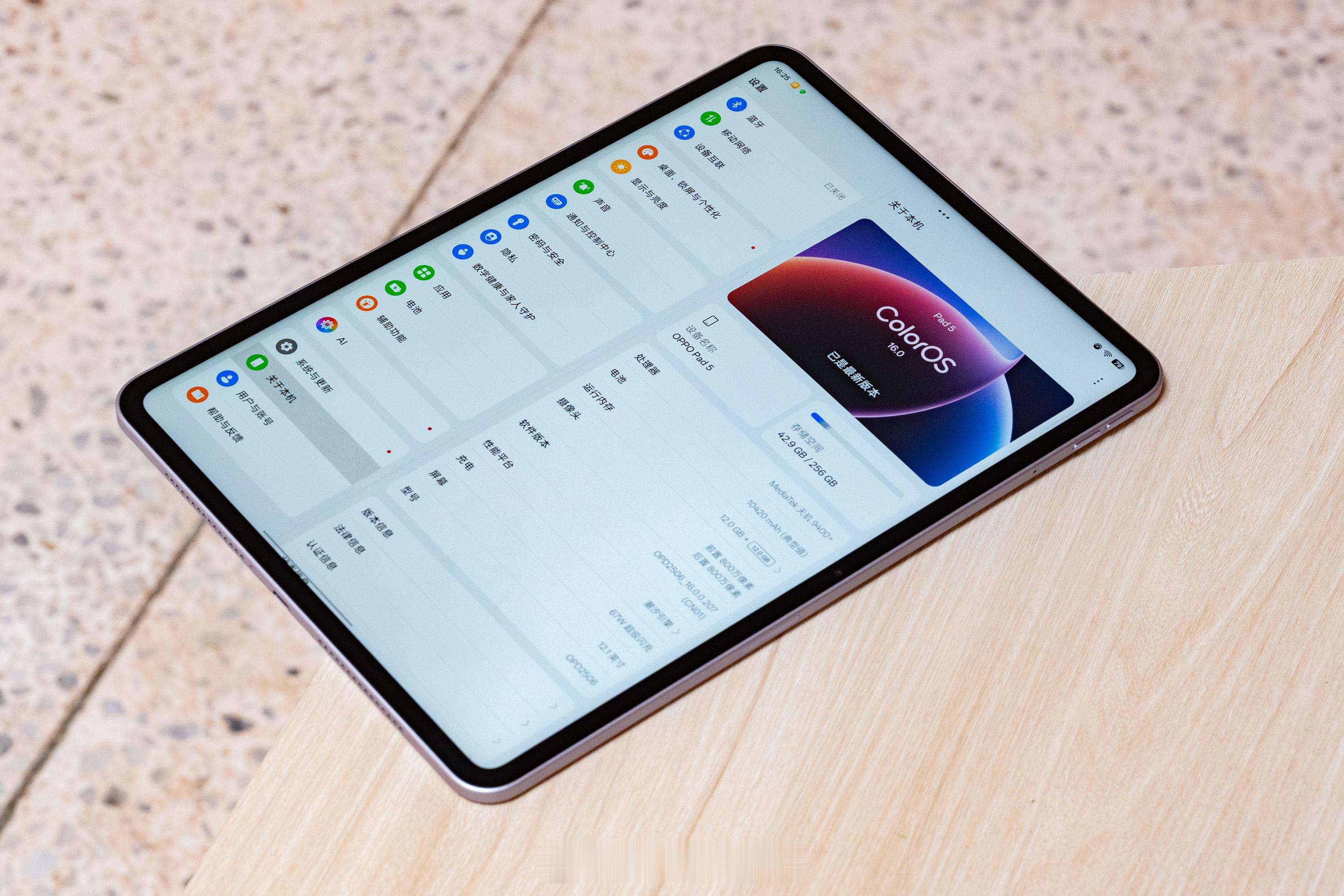 最后再来讲讲柔光屏,相较于 iPad 纳米纹理玻璃要加上千块钱的「选配」,OPPO Pad 5 自带的柔光屏不但更有质价比,而且新一代纳米蚀刻技术,大幅减轻了柔光屏的颗粒感,也就是说同时兼顾了清晰观感和磨砂手感。