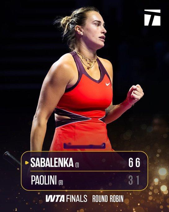 萨巴伦卡好轻松,6-3、6-1横扫保利尼,取得总决赛开门红,首次单赛季达成60胜~