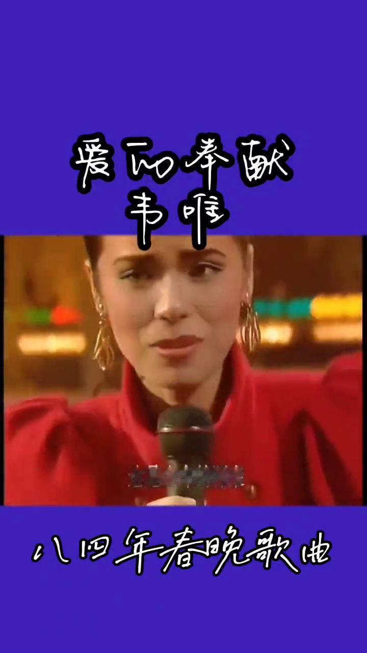 八四年春晚歌曲:爱的奉献。 作词黄奇石,作曲刘诗召,演唱韦唯。 这是心的呼唤,这是爱的奉献,这是人间的春风,这是生命的源泉。再没有心的沙漠,再没有爱的荒原,死神也望而却步。幸福之花处处开遍,世界将变成美好的人间。这是心的呼唤,这是爱的奉献,这是人间的春风,这是生命的源泉。再没有心的沙漠,再没有爱的荒原,死神也望而却步。幸福之花处处开遍,只要人人都献出一点爱,世界将变成美好的人间。韦唯。