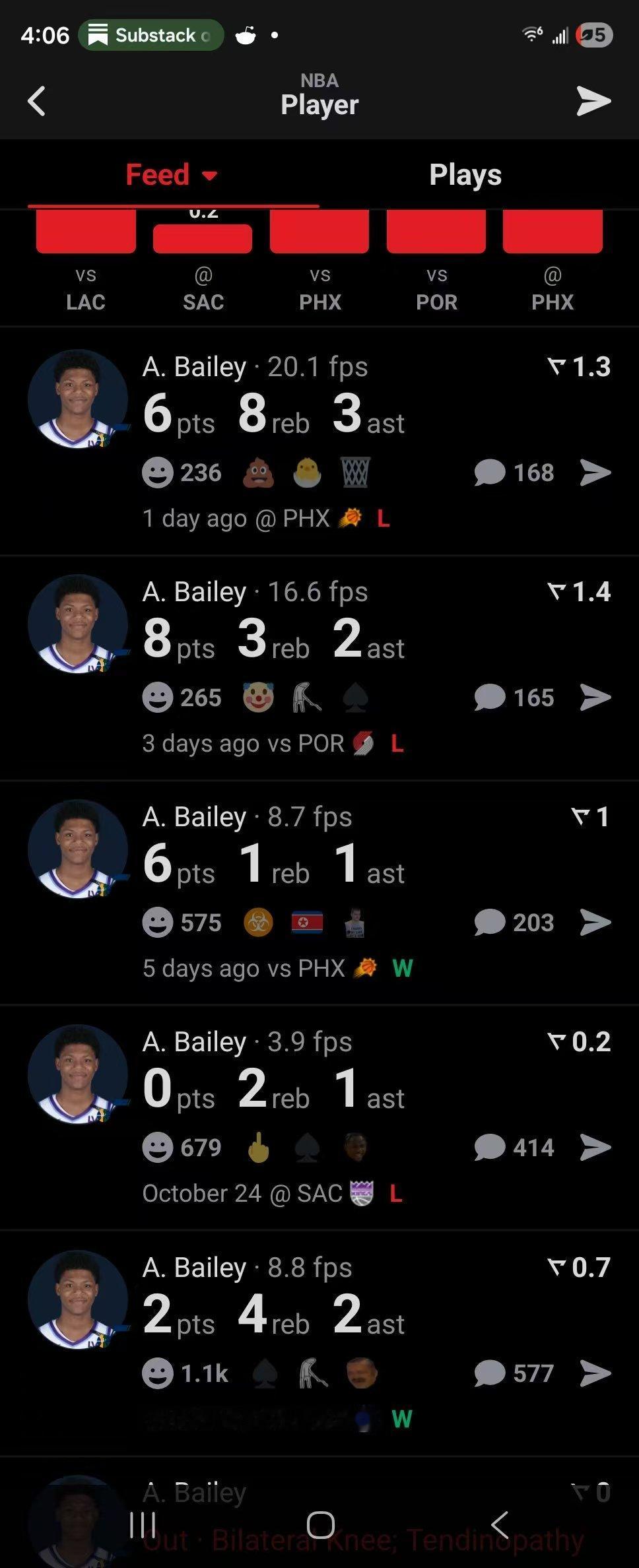 埃斯-贝利到底是水还是不水? 爵士队103-126惨负黄蜂,黄蜂队还是缺了三球和米勒,即便如此,爵士队也早早被打花,黄蜂队最多领先29分。 2025届新秀对抗中,5号秀埃斯-贝利上场19分钟,8投3中,三分3中0,得到6分1助攻1抢断。 4号秀克尼佩尔上场35分钟,17投9中,三分9中4,罚球2中2,得到24分6篮板5助攻。 毫无疑问,这场直接对话中,克尼佩尔完胜埃斯-贝利。 贝利不单是本场比赛表现不佳,常规赛开打至今,还并没有表现好的比赛。 赛季至今,贝利替补出场6场,场均上场17.3分钟,得到4.7分3篮板1.7助攻,投篮命中率27%,三分命中率13%,这进攻效率不是一般的低。 夏季联赛的贝利如果说表现尚可的话,季前赛的贝利表现可以说是相当出色,虽然只打了2场比赛,但展现了出色的进攻实力。 2场季前赛,贝利场均22.5分,投篮命中率60%以上,很多球迷在贝利身上看到了麦迪的身影。 没想到,到了常规赛,贝利似乎完全没有适应NBA的节奏。 就目前来看,2025年选秀前十顺位中,除了得不到什么上场时间的10号秀马卢阿奇外,其余8位新秀表现都比贝利更好。 状元弗拉格、榜眼哈珀、探花埃奇库姆不用说。4号秀克尼佩尔目前场均14分,三分命中率达到43%。 6号秀特雷-约翰逊场均12.7分,7号秀费尔斯场均13.7分,8号秀杰明场均7分,9号秀博伊尔斯场均10.6分。 贝利这到底是在搞事情呢,还是还没展现天赋?