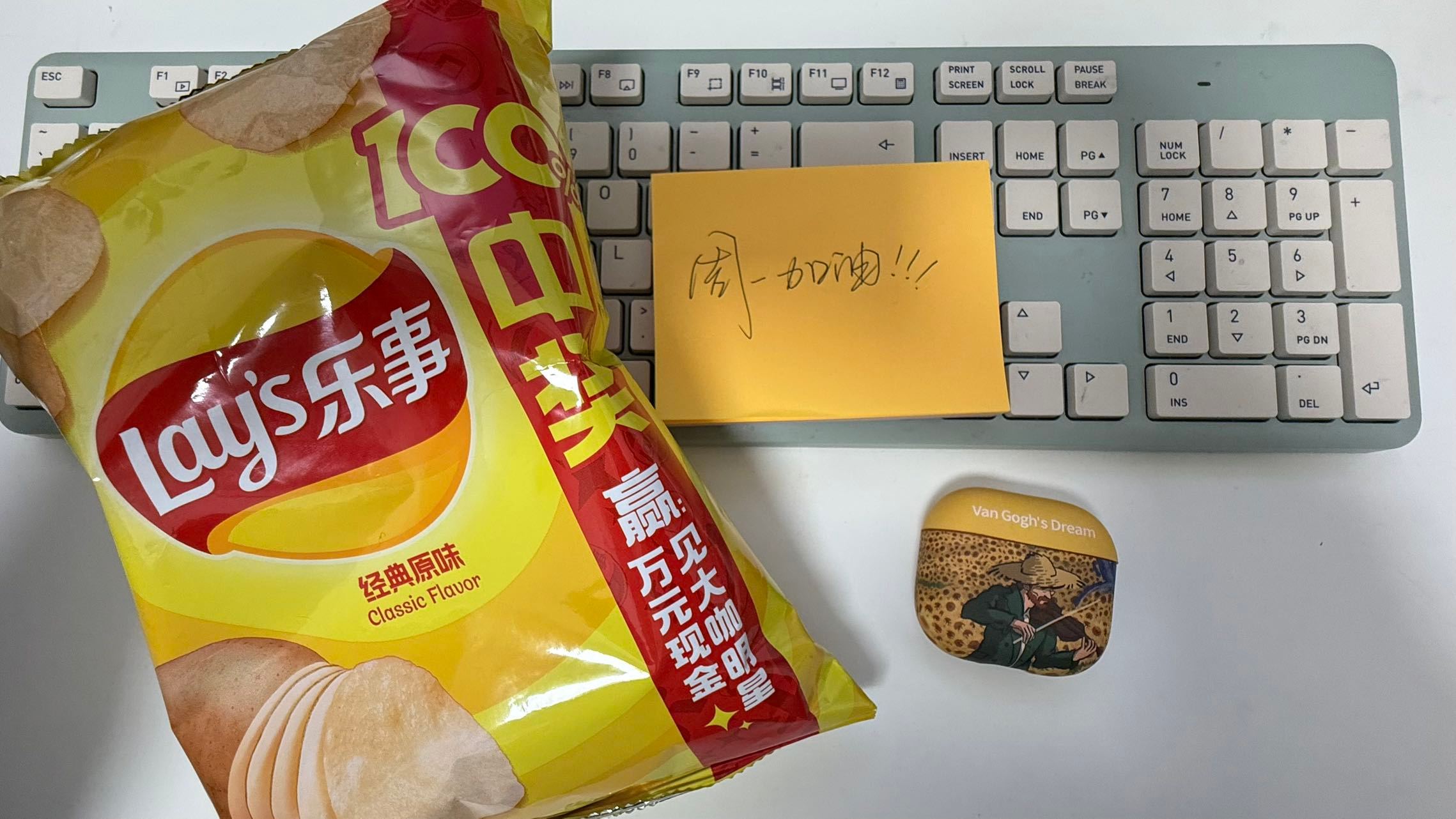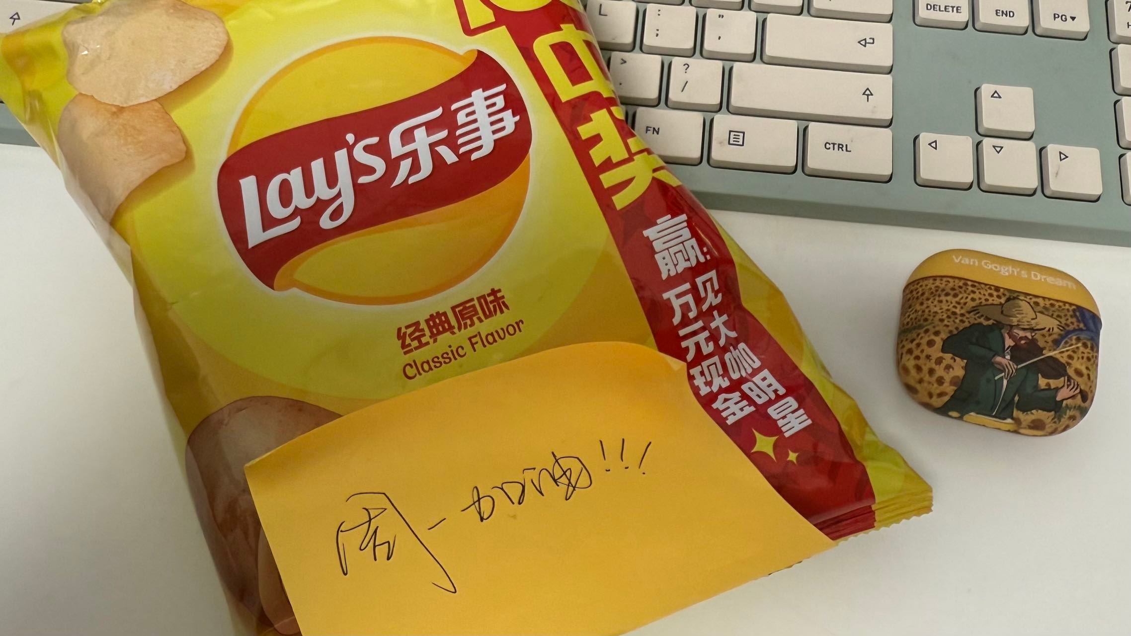 周一也有周一的开工仪式谁懂啊,周一早上的闹钟比过年的鞭炮还刺耳,天光还没大亮就出了门,到公司之后虽然人在工位上坐着,可是俺的灵魂已经飘走了,大早上一大碗的油泼面也拯救不了一点。还好抽屉里还有包乐事,咔嚓一口感觉魂又回来了。拯救周一的开工仪式,就是来一口乐事,再配一杯冰美式,别提有多巴适了 ,原地复活的程度!这一周的工作先缓一缓,先把薯片和冰美式吃美了,开启元气满满的一周!