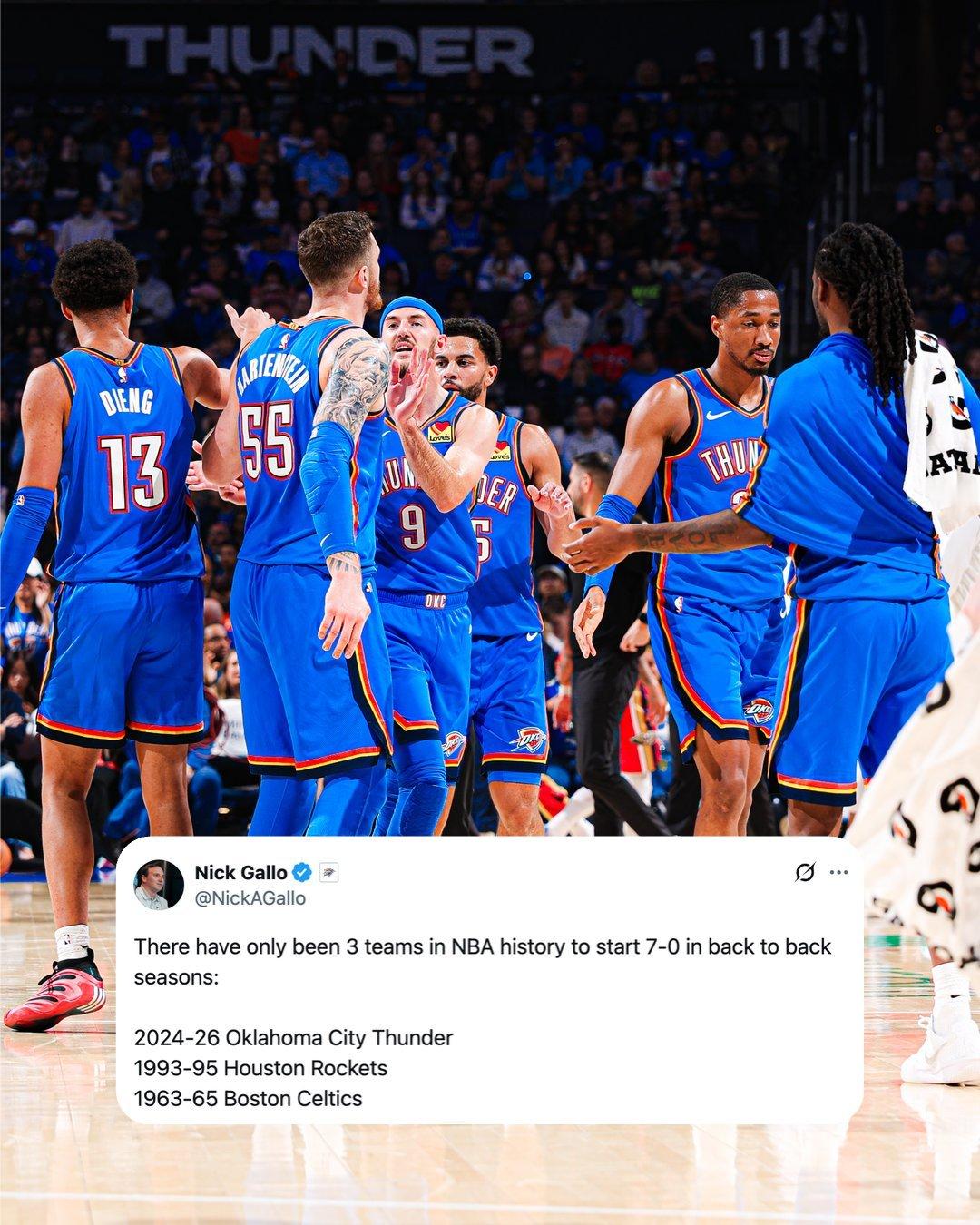 随着公牛和马刺今天都输球,赛季至今唯一不败只剩雷霆,而且他们是历史第3支连续两季开局7-0的球队,稳就一个字!
