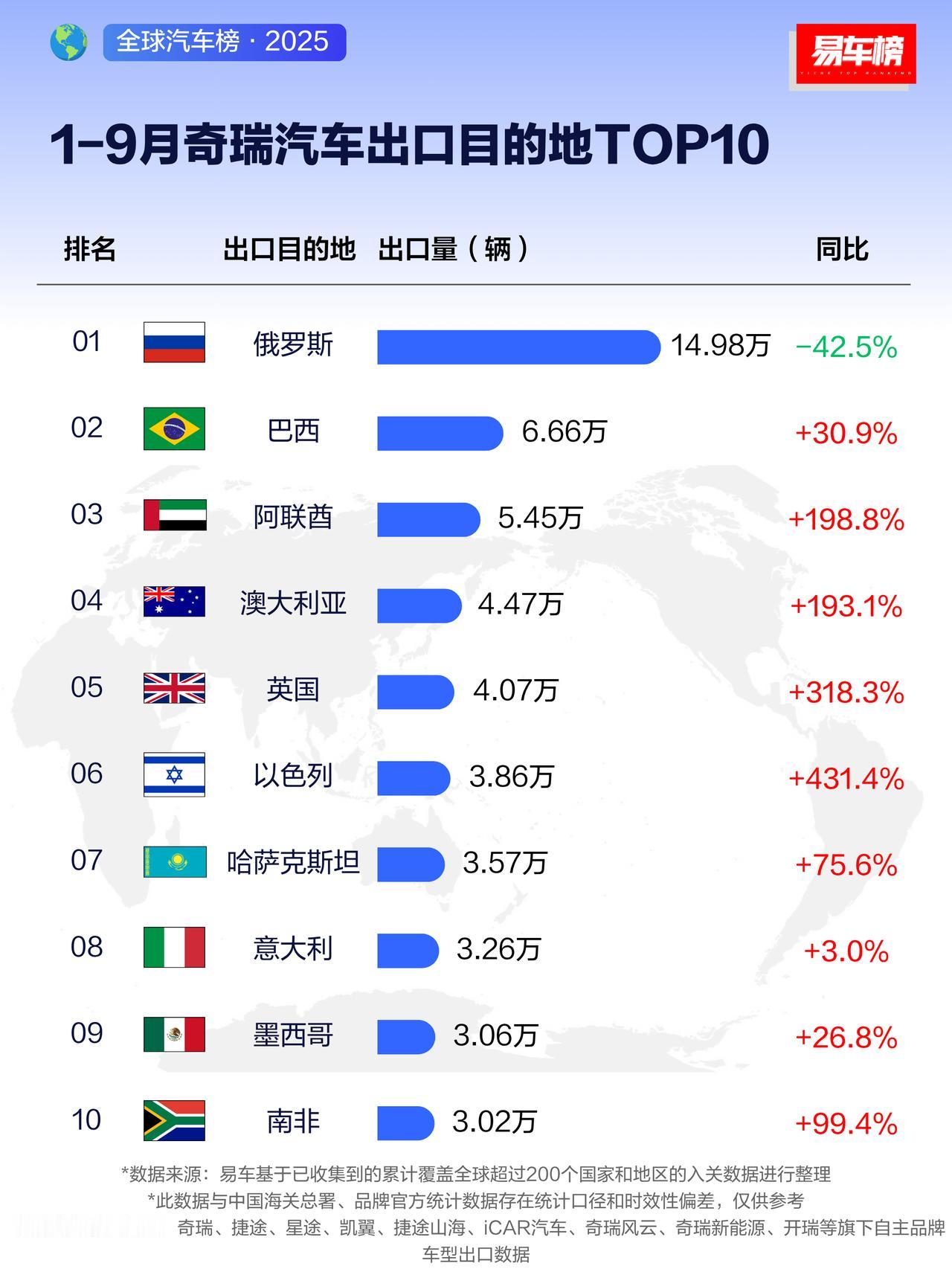 奇瑞出海有点猛啊,除了第一名由于众所周知的原因,其他在暴涨。