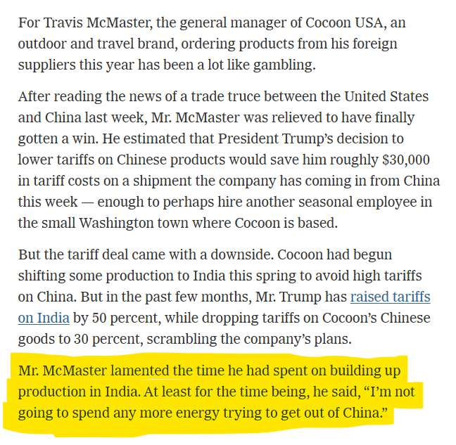 这导致了 NYT 报道的现象,那些费尽心思把供应链从中国挪到印度的品牌发现。。。