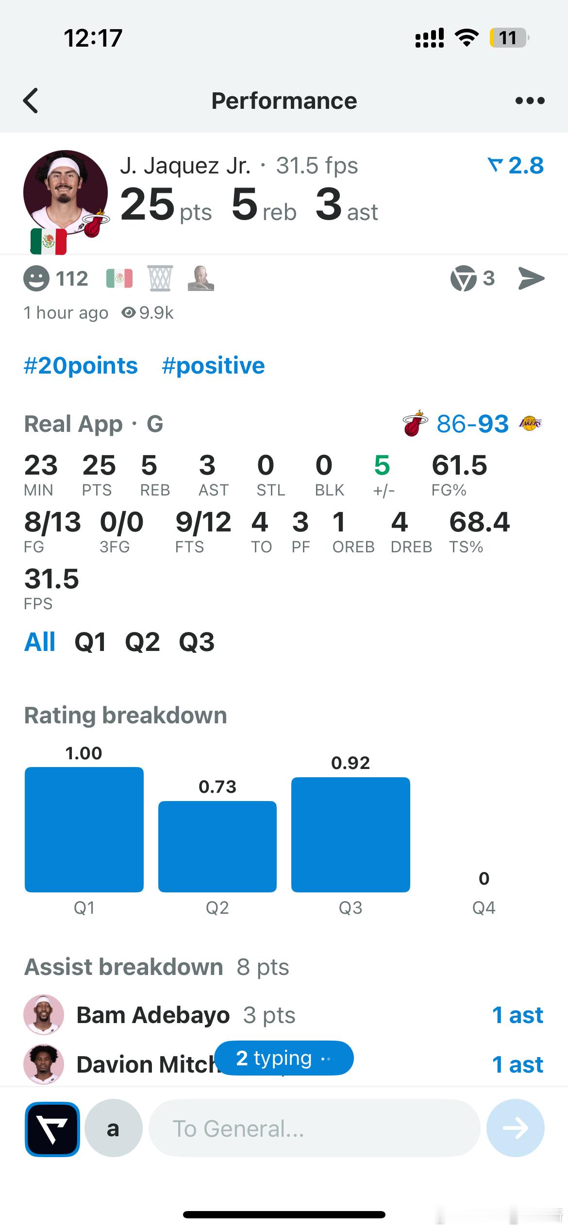 第三节还不错!!4中3拿下7分!!迈阿密热火[超话]热火vs湖人