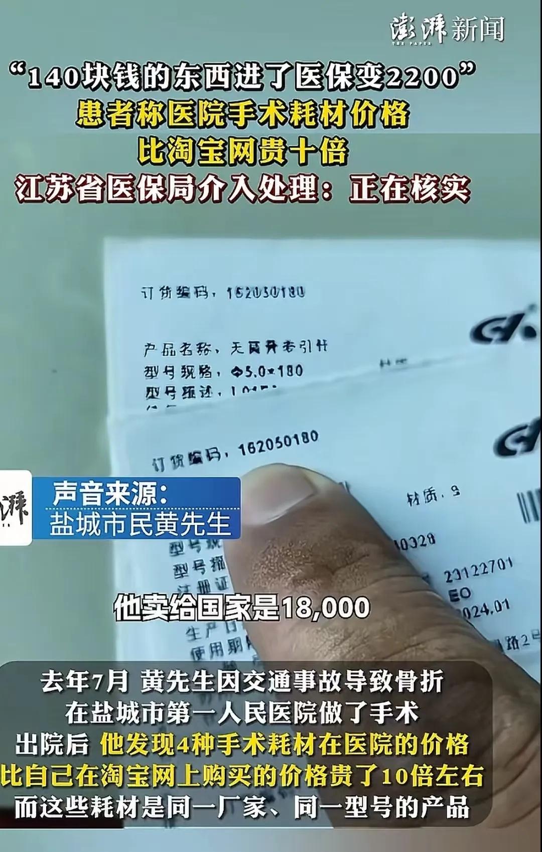 江苏盐城,男子手术出院后在网上查耗材的价格,结果发现同一个厂家生产的医用耗材,在网络上的售价竟然不到医院的1/10!男子:自己在网上买只要1800,但是刷医保要18000元!面对惊人的价差,究竟谁来给患者一个说法? 这个令人震惊的价差背后,隐藏着怎样的利益链条?难道我们一直相信的“医药行业的透明和公平”只是一个美丽的谎言?男子的遭遇,或许只是冰山一角。很多患者在医院里花的钱,究竟被谁“操控”了?为什么同样的耗材,价格可以天差地别?这不仅仅是一个数字的差异,更是关系到千千万万家庭的健康和钱包。 有人说,医院的价格是“合理的”,因为要考虑到设备、人工、管理等成本,但真的是这样吗?还是说,这背后隐藏着更深层次的利益输送?那些在幕后的“黑手”,让普通人承受了不应有的沉重负担。我们习惯了相信,医疗是“救死扶伤”的圣地,但现实却似乎变得越来越“商业化”。患者成了“被割韭菜”的对象,利益链条上的每一环,都在不断榨取着普通人的血汗钱。 更令人愤怒的是,面对如此巨大的价差,患者的心声几乎无人倾听。医保制度的漏洞、信息的不对称,让那些最需要帮助的人,成为了最无助的受害者。男子的案例,不仅仅是个别现象,而是许多家庭的缩影。我们不得不问:谁在守护我们的权益?谁又在操控着这场看似“公平”的游戏? 这场“价格战”,实际上是一场关于人性和制度的较量。有人说,透明才是最好的解药,但现实中,透明的背后又隐藏着多少黑暗?我们需要的不仅仅是曝光,更是制度的改革和监管的加强。让每一份医用耗材都能在阳光下交易,让每一个患者都能用得起、用得安心,才是我们共同的追求。 这件事,激起了无数人的愤怒,也点燃了全民的反思。我们不禁要问:如果每个人都能用心去关注、去发声,这个医疗体系会不会变得更公平、更透明?我们期待,不只是个别的“勇士”站出来抗争,而是整个社会的良知和正义能成为最坚实的后盾。 让我们共同呼吁:关注医疗价格,守护每一个家庭的健康权益!因为,只有真正的公平,才能让每个人都感受到温暖和希望。社会热闻 社会百态