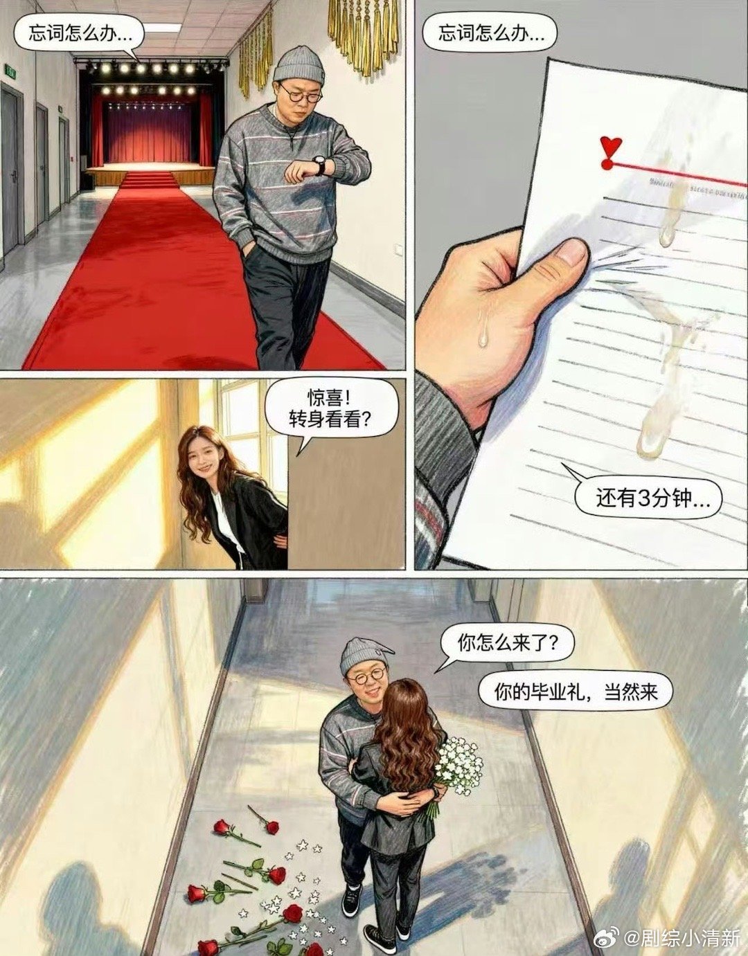 杜海涛用漫画回顾留学21天 漫画里的他有点傻气,有点认真,有点想家,但更多的是爱。当沈梦辰出现在毕业典礼,他画下两人十指相扣,连空气都变成了粉色。