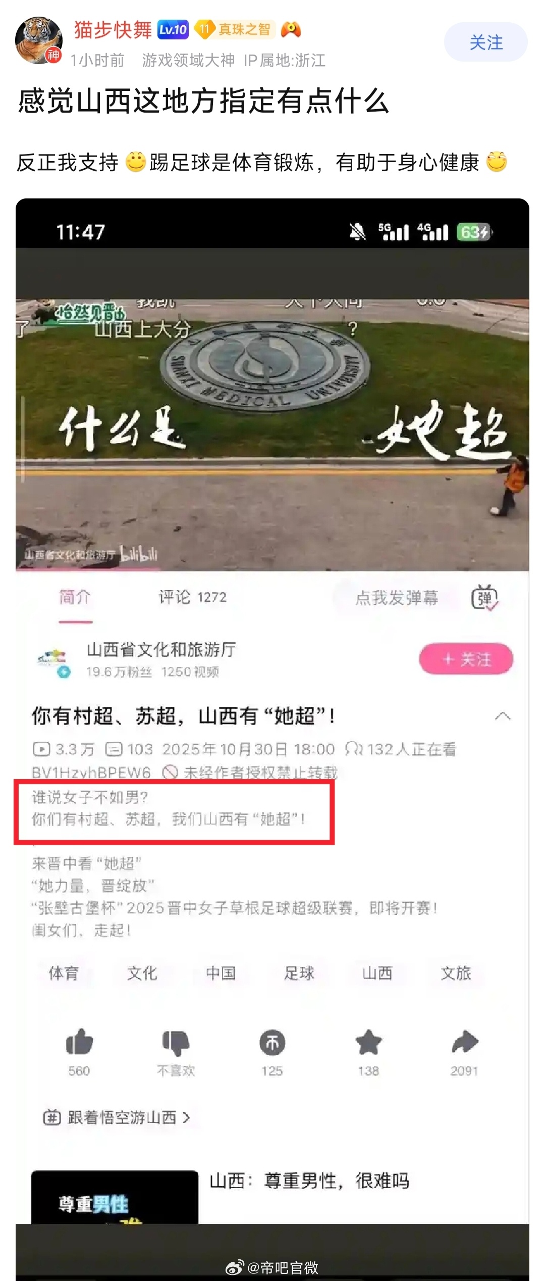 其实这样搞不太好,如果“村超”口号是:“谁说村里人不如城市人?”或者盲人足球说“谁说残疾人不如普通人?”