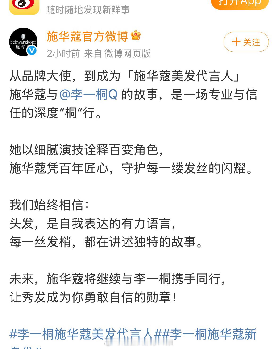 李一桐施华蔻升title了,美发代言人官宣!桐姐有效播剧,商业价值越来越高![求关注]