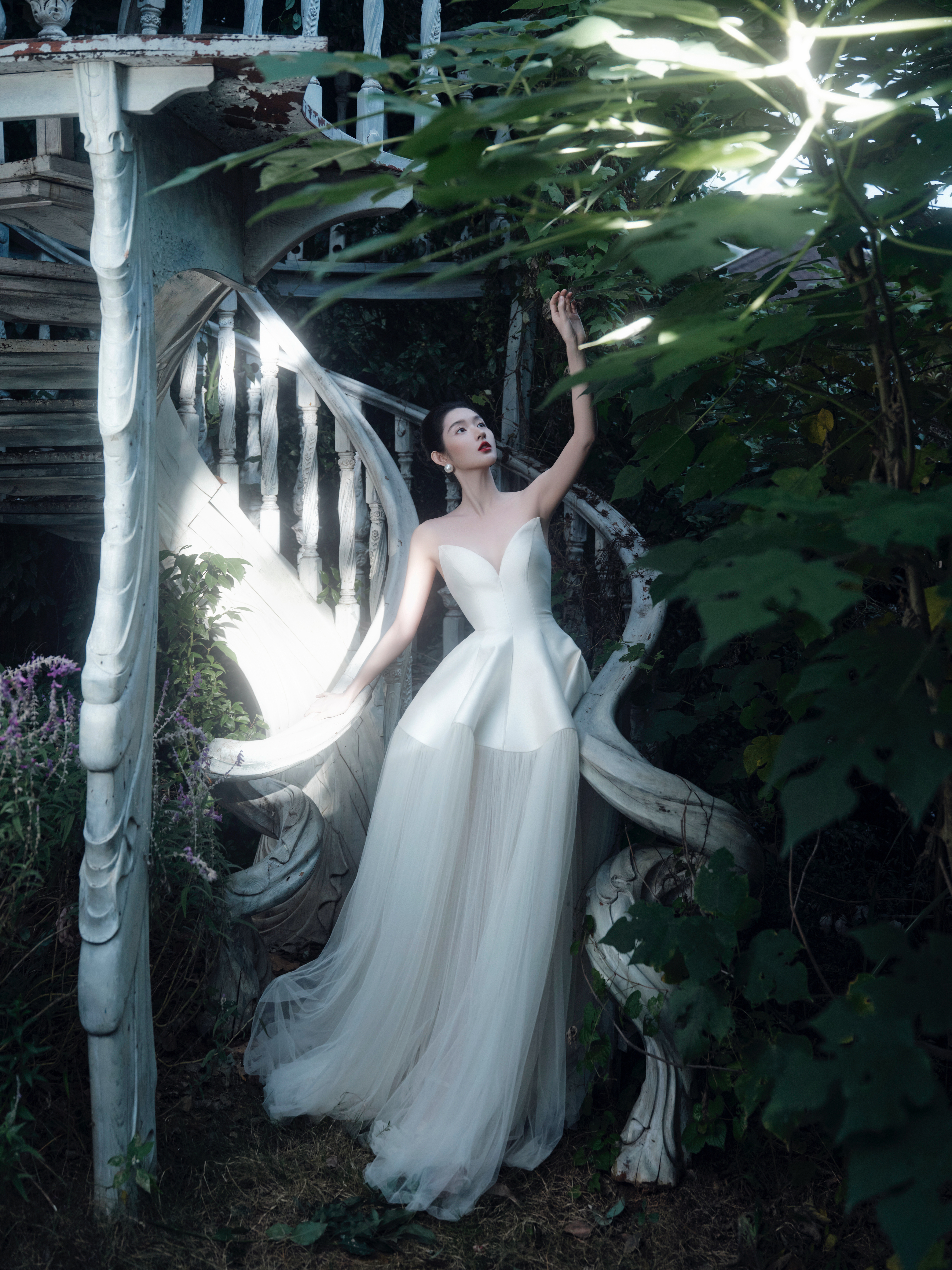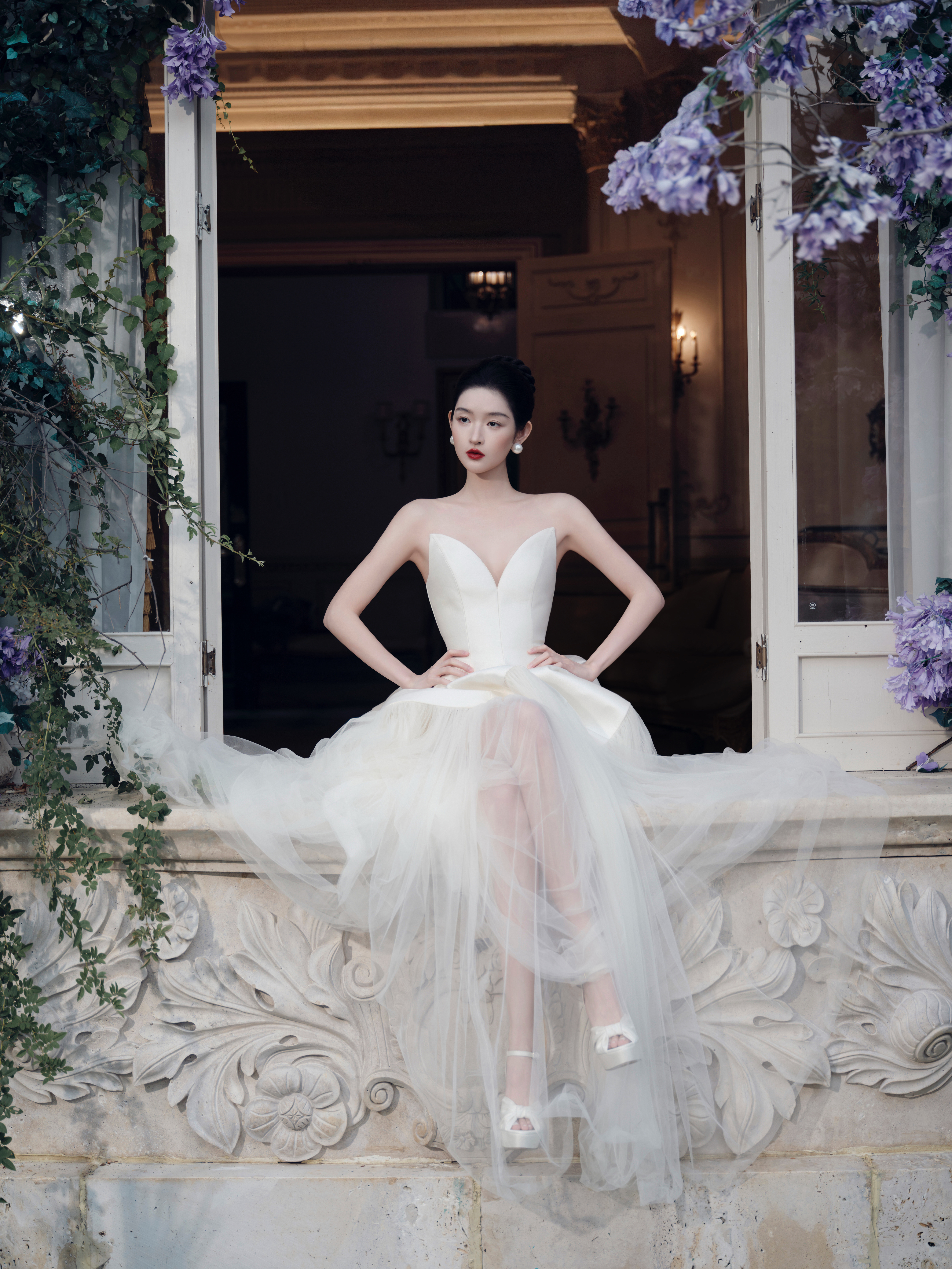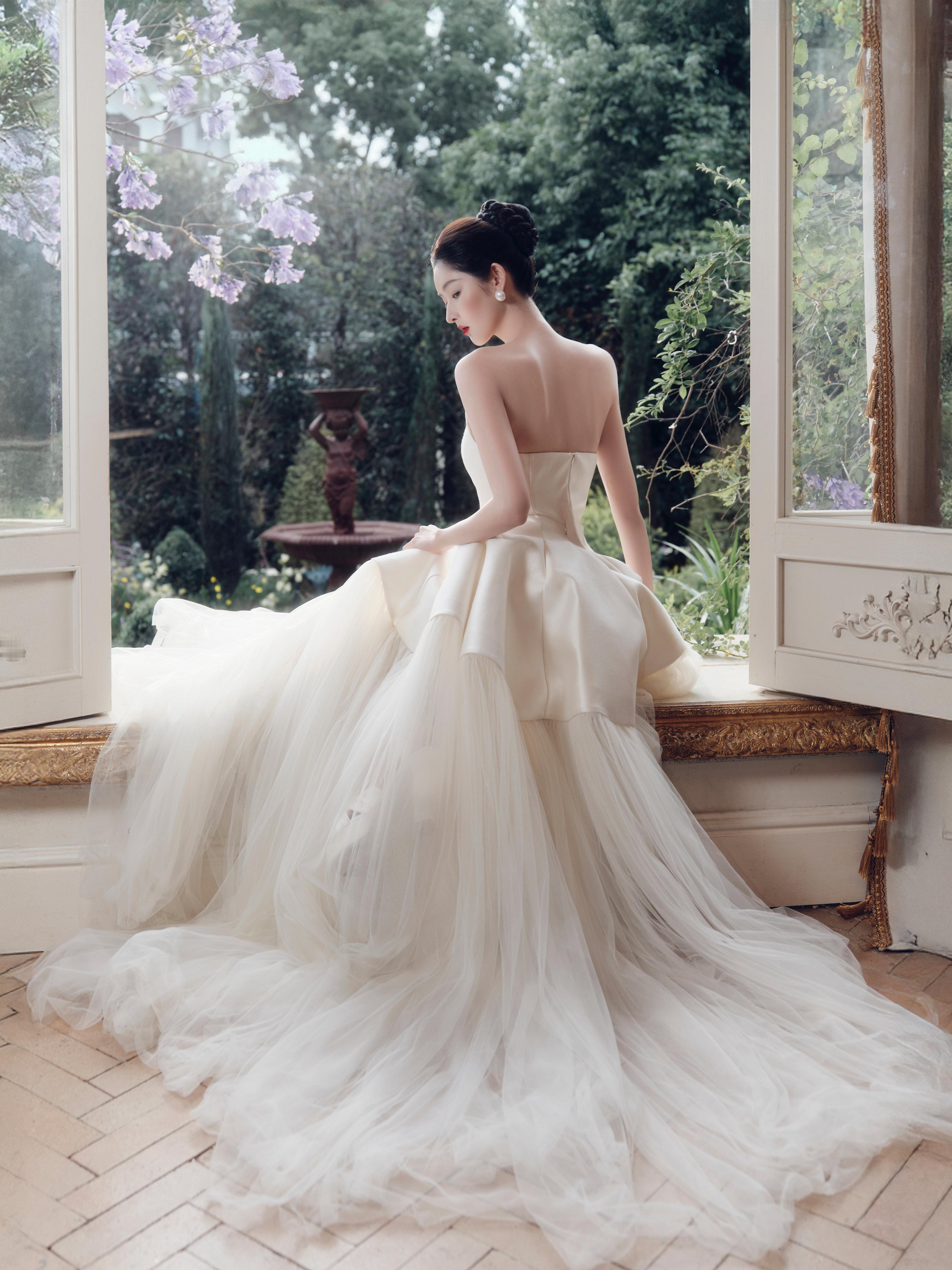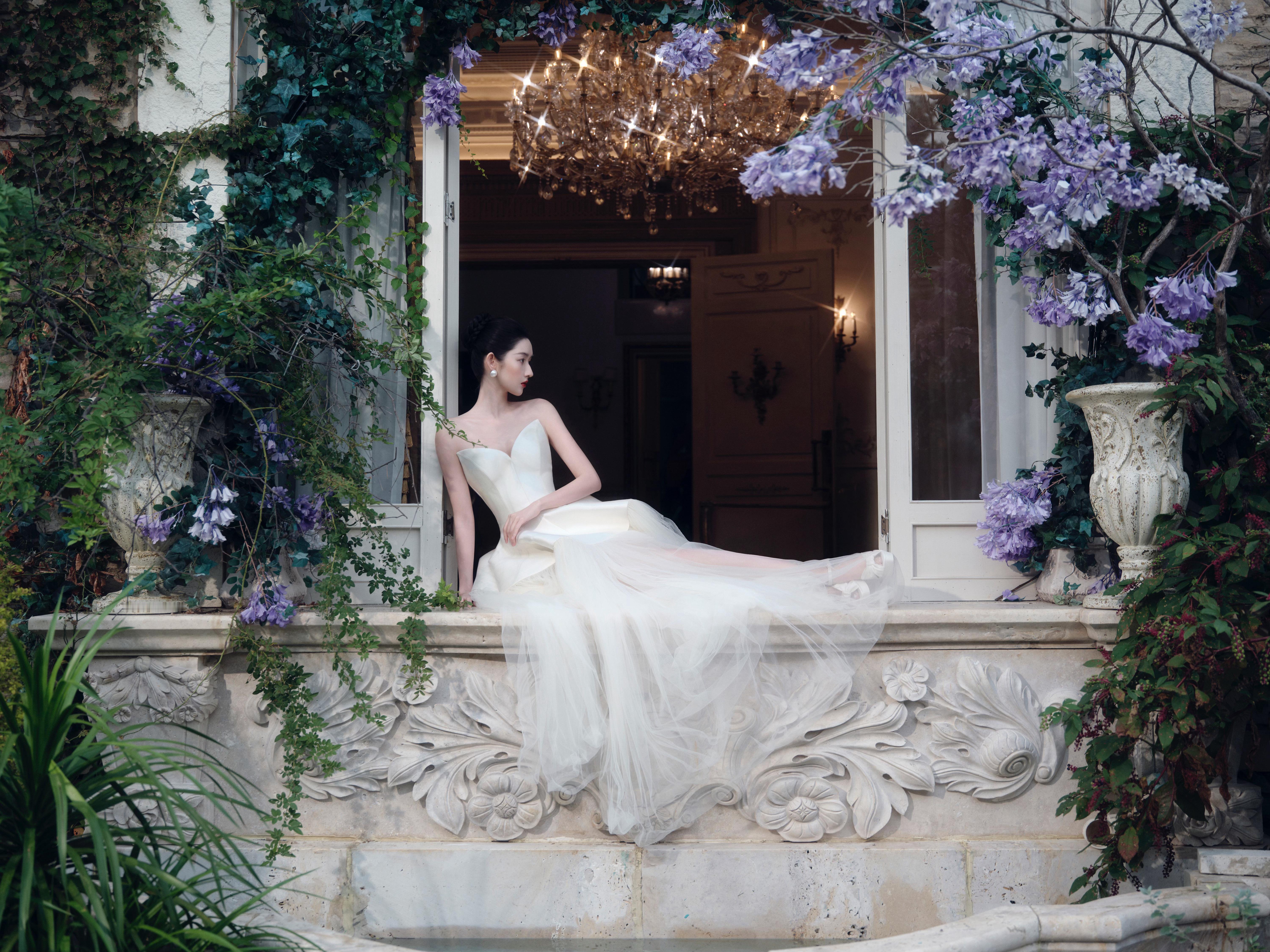 王玉雯 以缎面婚纱为笺,将优雅写成时光的诗行。王玉雯复古红唇