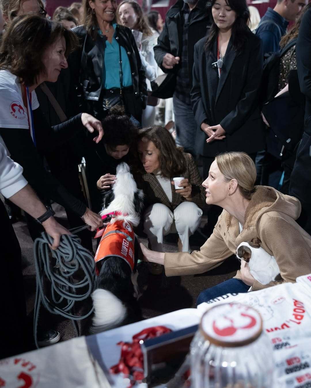 11.2 摩纳哥王妃夏琳带着狗子参加宣传保护动物的慈善活动,外套来自maxmar