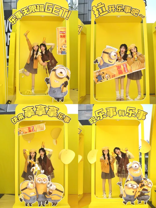 🍌“Bello banana!” 是谁在商场就和可爱小黄人合影啦! 是我!是我!是我! 售卖区购买了产品不仅有赠品编织袋,还可以免排队领合影券 不用去环球也能和黄团子贴贴啦~ 还可以打卡乐事版人生四格 拍照好出片!! 发布就可以领取🍌乐事无限芭拿拿香蕉味薯片! 😋好吃又好拍,和好朋友们一起分享~开抽屉“拿拿拿”薯 快和闺蜜一起冲!