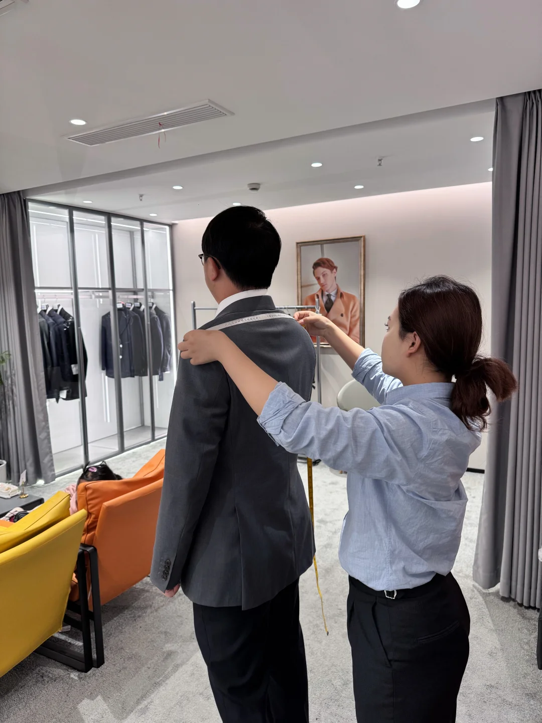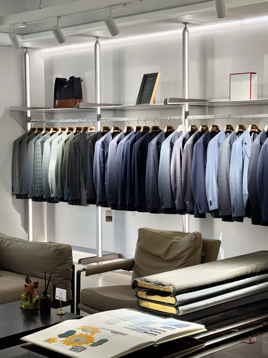 周年礼物🎁 给老公定制一套贴合身形的定制衣服 对比了几家 选择了复悦里这家尘界 店面比较大 分区陈列也很一目了然 从西服 西裤 到领带领结 再到皮鞋 衬衫等都可以在他家一站式购齐 导购小姐姐真的好贴心 根据我们的身材 肤色做出了推荐 ✔️ 领型 袖口都可以选择自己喜欢的🤭 面料册也超多选择 店里遇到了很多即将新婚的小夫妻来定制 期待成品🥰🥰