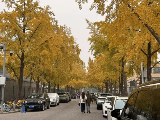 图2️⃣:三里屯东五街的银杏 记得带身份证或身份证照片给WJ小哥哥看了才能进哦