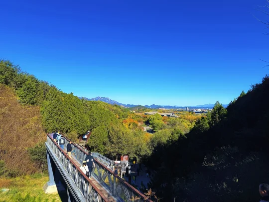 停车位周末非常紧张 我停在了“北京雁栖湖生态发展示范区旅游服务中心” 出停车场往回走五分钟就能到西山步道的入口~ 十分钟的时间就能到观景台[偷笑R]