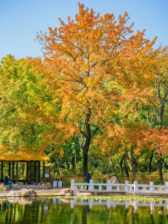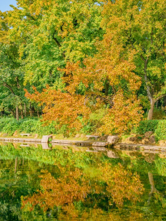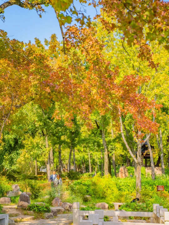 - 苏州天平山的秋日, 正在上演一场色彩的盛宴。 叶子正由青绿渐变为金黄橙红 层林尽染…… 「碧云天,黄叶地,秋色连波」 范仲淹笔下意境 此刻正在山间流淌 走在石板路上 脚下沙沙作响 是秋天在与你私语 古寺飞檐从五彩枫叶中探出头来 恍若穿越千年 阳光穿过枝叶缝隙 洒下斑驳光斑 随手一拍都是诗 - 📍天平山(目前枫叶🍁绿色黄色为主!!) -