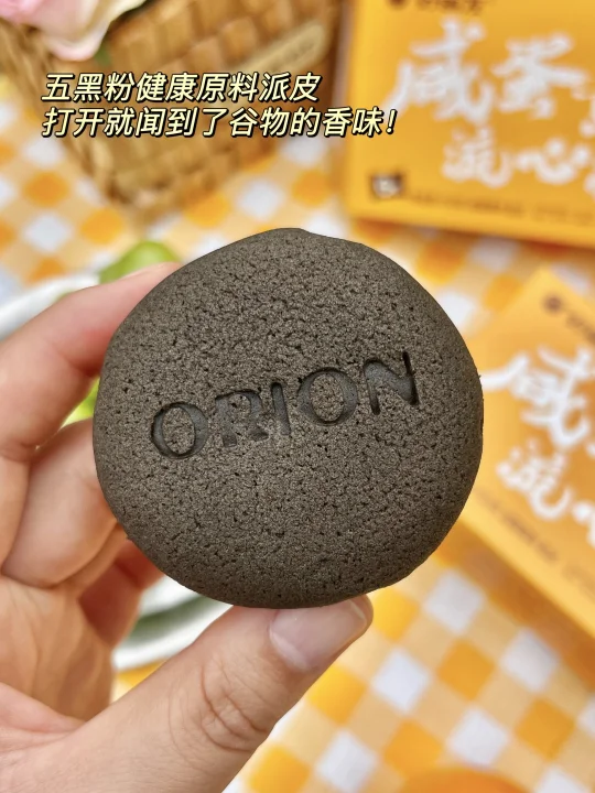 外面的派皮是超有高级感的黑色!打开的时候就闻到了谷物的香味,用的是五黑粉健康原料,黑米、黑芝麻、黑小麦、黑豆、黑桑葚,满满的全是天然的黑色健康食材,既解馋又没负担!在零食堆里一眼就能锁定它!👀