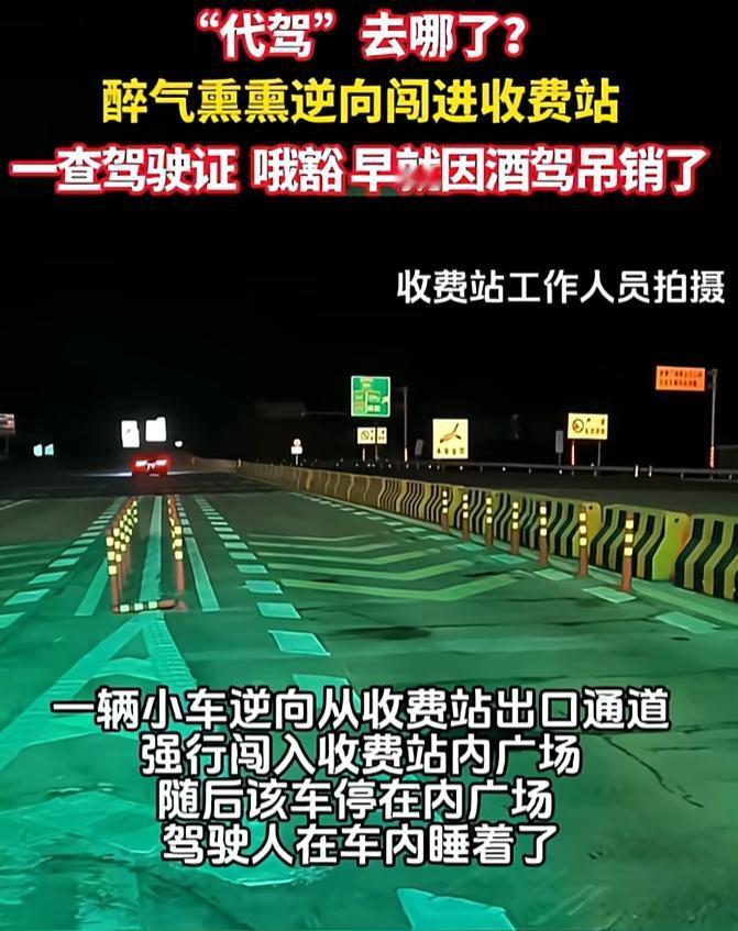 近日,湖南衡阳,工作人员正在收费站,突然有辆黑车逆行着闯入了收费站,工作人员赶紧报警,没想到等警察赶来后,车主已经满身酒气的睡着了,而醒后的第一句话居然是:我代驾呢? 深夜,工作人员正在收费站内工作,突然有辆黑车逆行着就闯了进来,工作人员赶紧提醒车主逆行了,没想到黑车竟一点速也不减,闯入了收费站内的广场,随后把车停了下来。 警察同志迅速赶到现场,刚把车门打开就吓了一跳,车主满身酒气,已经趴在方向盘上睡着了,叫醒后车主也精神恍惚,答非所问,过了好一会儿才清醒过来。 警察同志问:你这车,当时是谁在开,车主说:代驾开的啊,收费站的工作人员站出来说:不对,车上就你一个人,你一个人逆行把车开过来的,车主也懵了,反问道:我逆行开过去的啊?我叫的代价怎么可能逆行呢? 工作人员问:那你代价呢?这时车主才想起来,自己找的代驾不见了,警察同志看男子这个状态肯定还没醒酒,就要车主拿出驾驶证核实身份,没想到车主居然没有驾驶证,男子说自己的驾照早在几年前就吊销了。最后,车主因为涉嫌危险驾驶罪被刑事拘留了。 有的网友说:这buff叠满了啊,无证+酒驾+高速逆行。 有的网友说:很多车主都是喝了酒叫代驾开到收费站就让代驾下车自己开上高速。 估计这男子也差不多,代驾给车开到了高速口后就走了,车主自己开车上的高速,然后酒劲一上来,东南西北也分不清了,逆行着就闯入收费站了。 喝酒不开车,开车不喝酒,这道理真不能等事情发生到自己身上了才明白,这车主已经很幸运了,一路上什么事都没有,这要是运气差一点出了车祸,最难受的还是家人啊,为了亲人,能少喝酒就少喝酒把。 素材来源:湖南高速警察