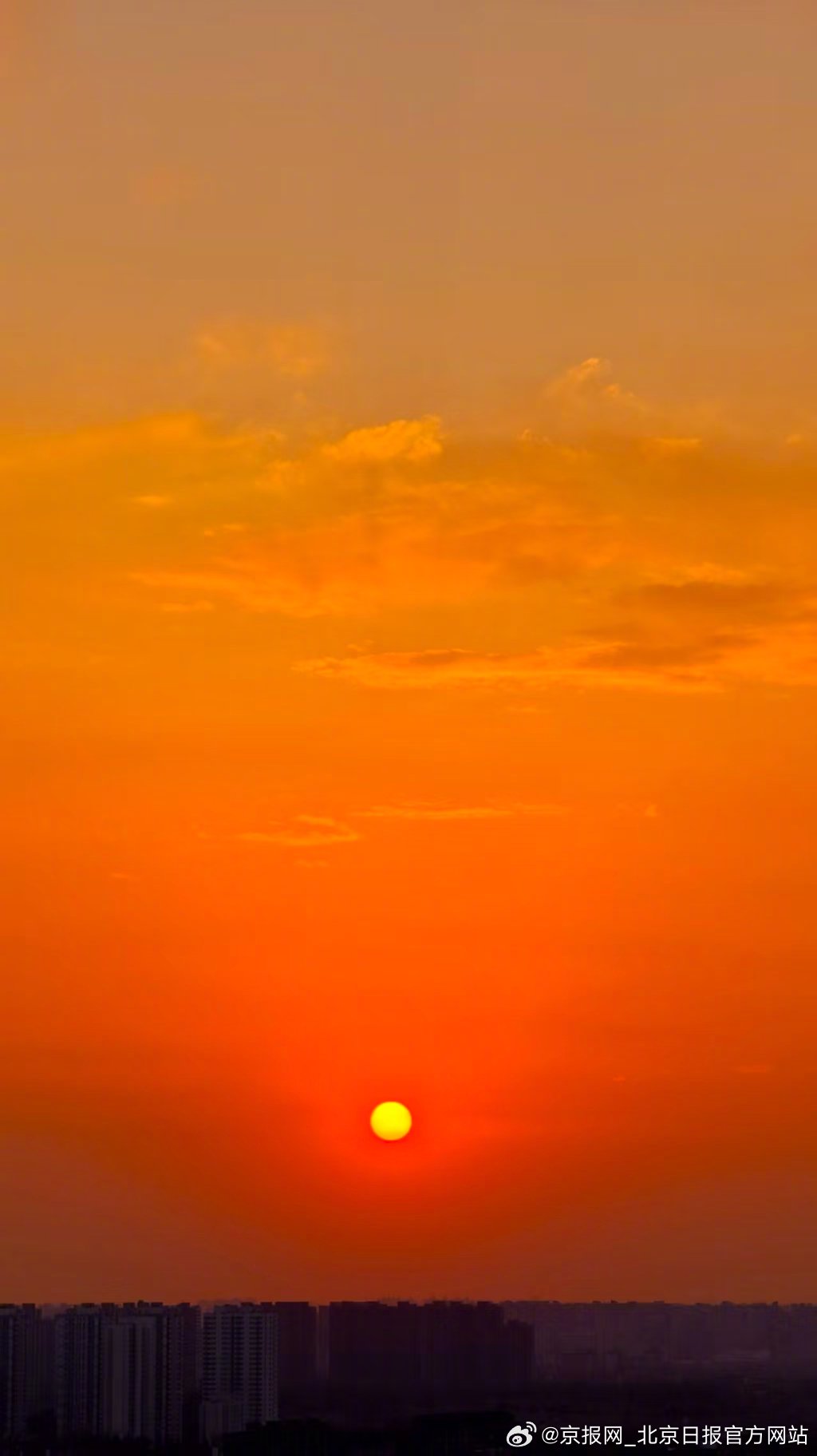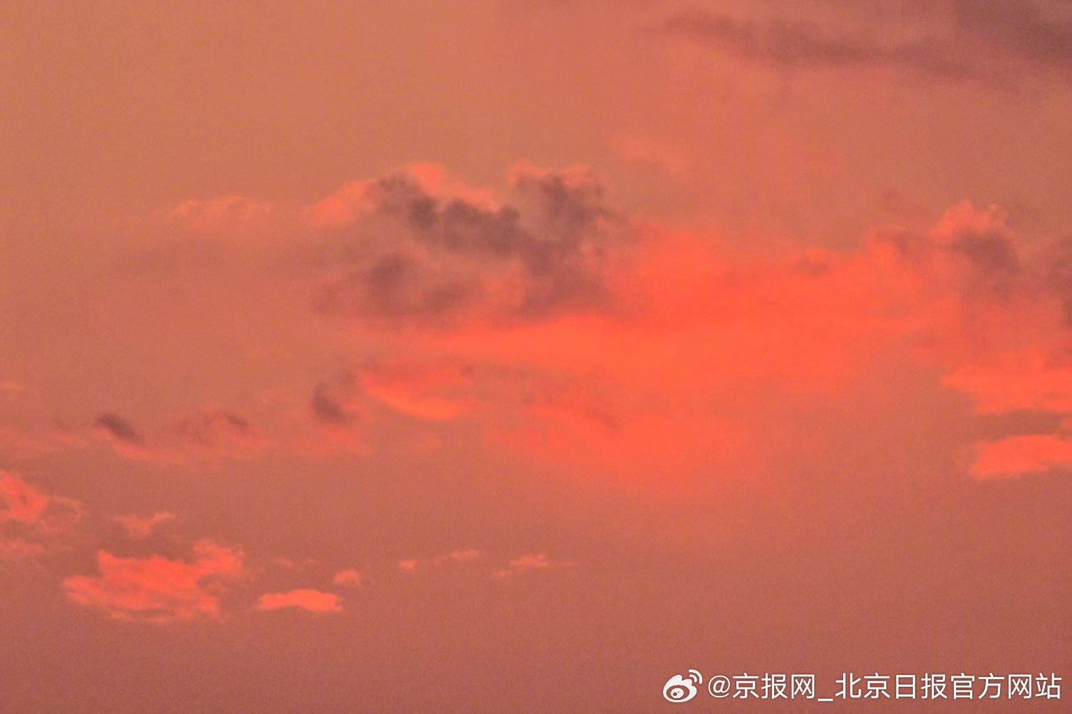 【甜蜜!#北京落日像块红丝绒巧克力#】#晚霞是天空寄来的情书# #今天北京真好看# 11月3日傍晚,北京晚霞寄来一封甜蜜“情书”!天际晕开橘粉色的柔光滤镜,落日像块红丝绒巧克力,轻轻一戳就能流出金灿灿的糖心。(作者 白雪亮 高源 王建忠 王春海 温红征 武辉)