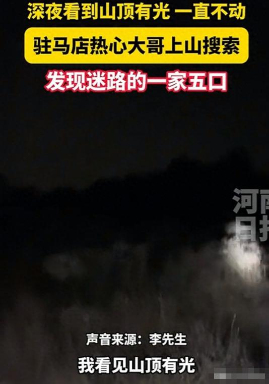 11月1日晚上,驻马店的李先生在自家院子里休息,忽然看到远处山里一个“亮点”长时间不移动! 接下来他的举动,连中国青年报也怒赞! 李先生的老家在驻马店驿城区板桥镇的黑石山景区,这天晚上天已经黑了,他便在自家小院里休息。 没曾想,不经意的望向远处,李先生忽然发现了异样…… 远处原本是一片黑茫茫的山林,却有一个小小的“亮点”出现,这大晚上的什么东西在山里发光? 李先生比较警觉,又盯着那个“亮点”看了许久,这下子看出点问题了——亮点长时间不灭,且也不移动! 李先生判断,“亮点”或许是手机亮屏!这就说明在这大半夜的山里,居然还有人?亮点如果上时间不移动的话,说明那人可能是迷路了…… 黑石山上最出名的就是各种形态各异的怪石,同时道路也很崎岖。如果没有照明又不熟悉方向,困在上面很危险,容易踩空滑到……甚至出大问题。 想也不想,李先生进屋拿起一个强力手电筒就朝着那微弱的“亮光”寻了过去…… 经过好一番寻找和折腾,李先生终于找到了亮光来源,居然还是一大家子五口人,里面还有小孩。 这家人是来黑石山观赏奇石,可能是忘了时间,加上秋冬季节天黑得早,这不就在山顶迷路了……上也不是下也不是,心里着急夜晚天气还凉,几个人都瑟瑟发抖…… 幸好,李先生一个不经意的抬头,看到了山顶的亮点! 幸好,李先生观察敏锐,准确意识到了问题所在! 幸好,李先生毫不犹豫的半夜山上救援…… 这一系列的“幸好”其实都不是偶然,李先生一定生来就是个热心肠,喜欢帮助别人的人,不然不会因为那么一点点的“亮光”就上山寻人! 一家五口在李先生的带领下安全下山,这段视频发布到网上之后,中国青年报也进行了转发点赞!这是来自权威官媒的嘉许认可,这是正能量的传播…… 别看事情小,但是扪心自问,如果换做是我们自己,发现漆黑一片的山顶有那么一点点微弱的“亮光”,真的会毅然决然上山寻人吗? 漆黑的山林,陡峭的怪石林,还有夜晚出没的野生动物……你会为了那一点点不确定为何物的亮光去救援吗? 不是每个人都能给出肯定的答案的! 但是李先生做到了,此时此刻,我想为驻马店人点个大大的赞,为你们的热心肠和善良点个赞! 别看这仅仅是李先生一个小小的举动,但是却点亮了黑石山整个夜空,温暖又明亮……