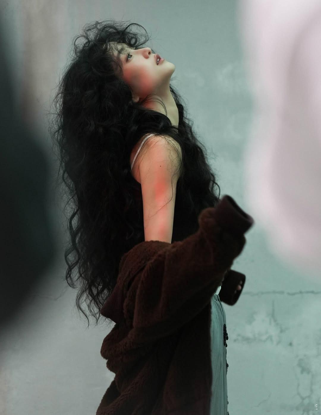何赛飞在电影《风月》拍摄期间。顶级骨相,锐利与妩媚并存。