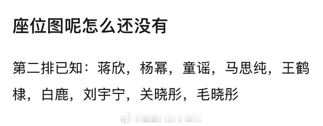 目前已知第二排有:蒋欣,杨幂,童谣,马思纯,王鹤棣,白鹿,刘宇宁,关晓彤,毛晓彤