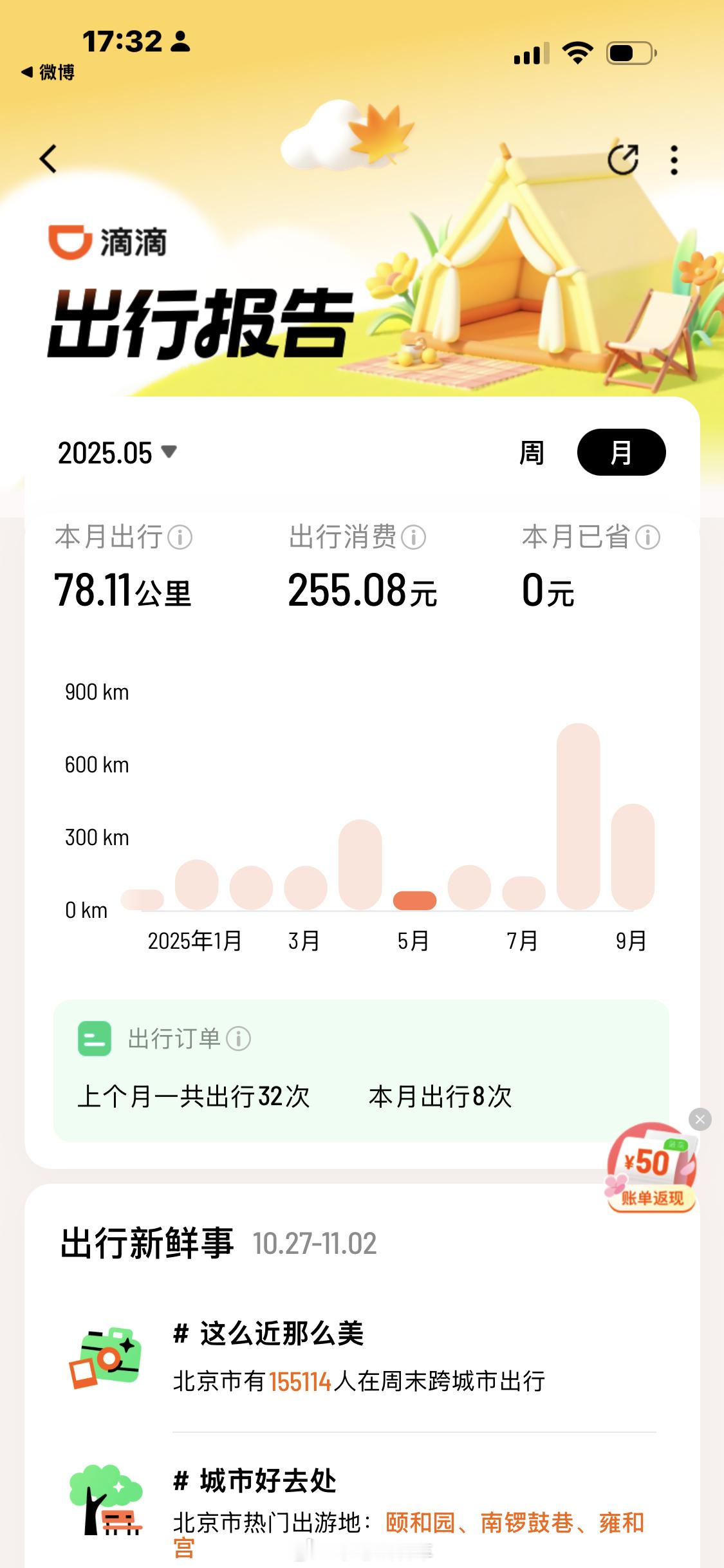 滴滴推送了一个出行报告,你们每个月打车多少钱?