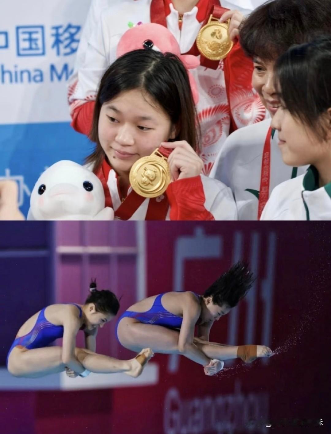 广东队没想到! 全红婵家人与教练们也没想到! 恐怕就连全红婵本人也没能预料,自己时隔183天没参加过职业赛事,结果这一跳竟“轻松夺冠”! 但说是“轻松”,其实并不轻松。 你看全红婵站在起跳台起跳的姿势,从绷脚尖就开始了,这就是省队和国家队的区别,想来全红婵一直没忘记自己的职业,保持着日常训练。 不愧是称之王者归来,两届奥运会冠军全红婵在双人10米跳台中与搭档王伟莹配合默契,拿到这个项目的第一名,为广东队夺金! 正如她比赛后的发言“我真棒!”