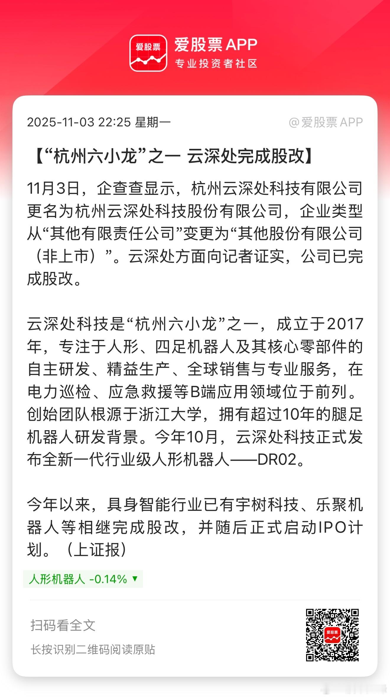 这几天科技股都是IPO的消息,周末燧原科技、超聚变、乐聚机器人要IPO,今晚杭州六小龙之一云深处也要来了。