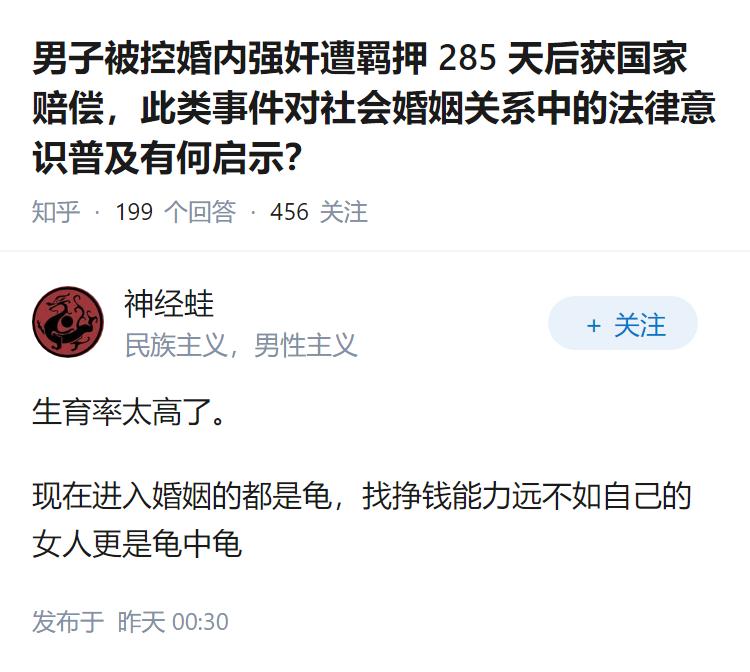 男子被控婚内强奸遭羁押 285 天后获国家赔偿,此类事件对社会婚姻关系中的法律意识普及有何启示?