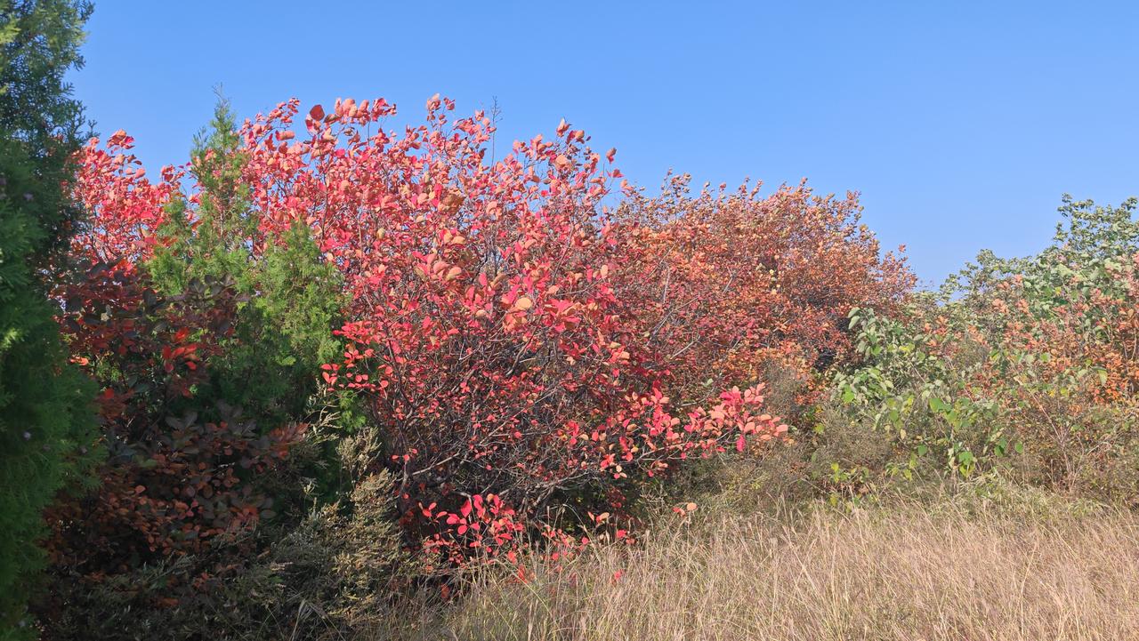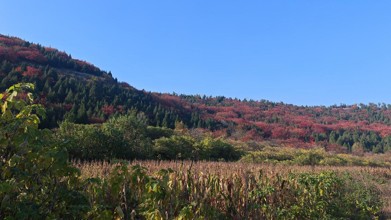 人生易老天难老,重阳岁岁,秋末秋风劲吹,霜天万里胜似春光。在平原地带生活久的人,乐见远方赏叶知秋。无论值不值,开车过去黄河到平阴的一个村,约一个小时许,就看到了,村庄周围,满山遍野的秋。红的,黄的,绿的,黄绿相间的,红黄相近的,静静热闹着,极像打翻了画家调色盒子。这个秋天,看到了,看到了自然红,瞬间记忆走近梦里,把日子也映的红了,满足知足。