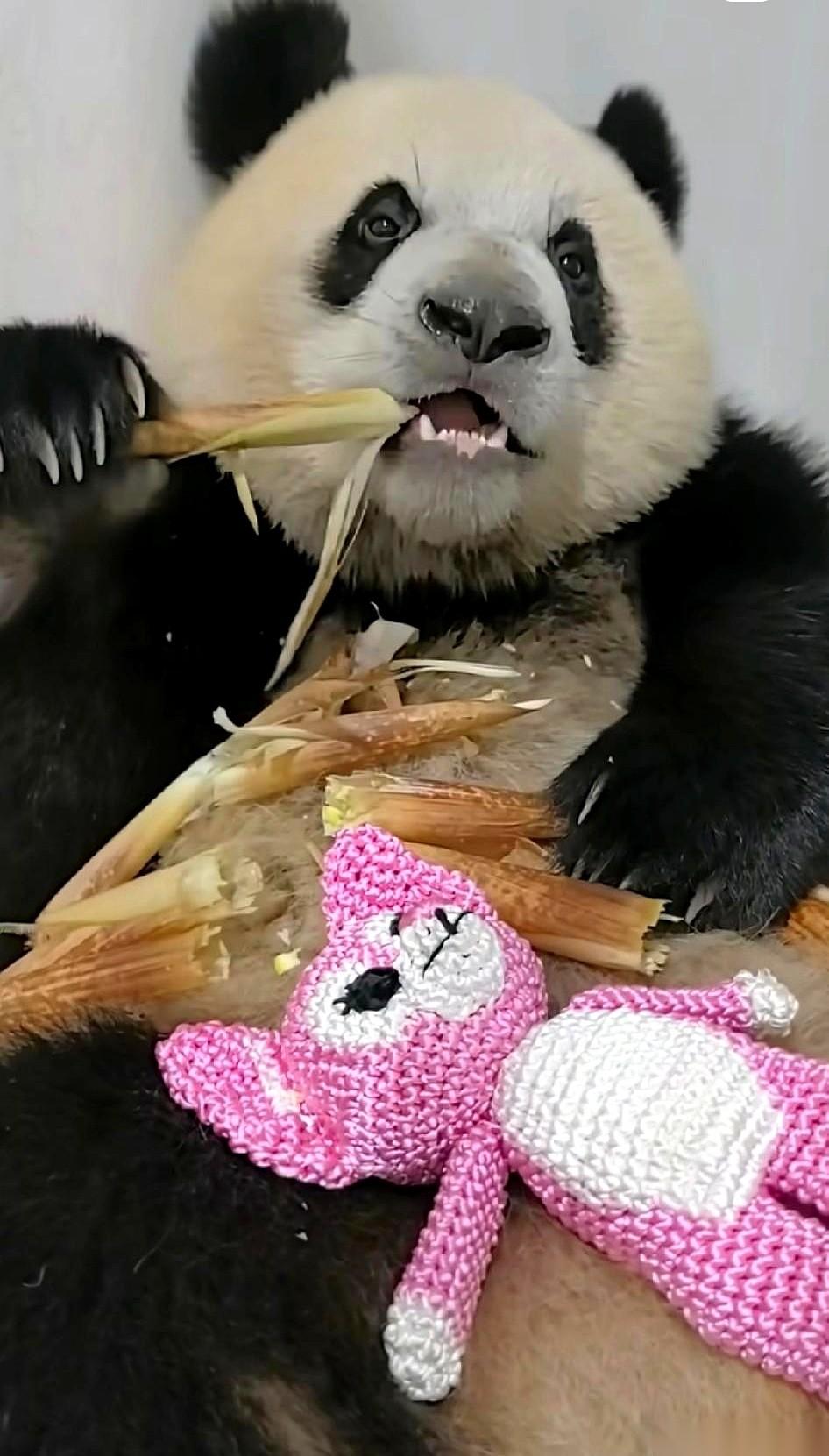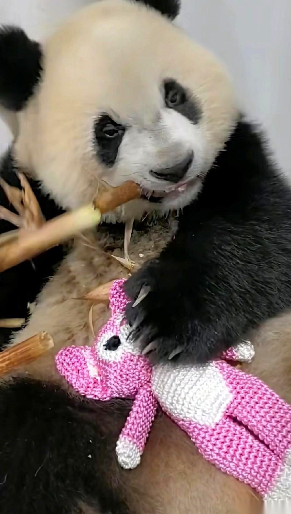 他管她叫“她”。 不是那个动物的“它”。 是女字旁的“她”。 就这一个字,别的都不用说了。 大半夜的,墩墩外公偷偷拍自家小闺女吃宵夜。 我们三妹呢,抱着个粉嘟嘟的阿贝贝,啃笋啃得正香,一抬头,嘿,被发现了,小眼睛瞪得溜圆,嘴都忘了动。 那一瞬间,真的,心都化了。 但你知道最戳我的是什么吗? 是那个干干净净的阿贝贝。 一个有洁癖的大男人,得有多上心,才会把一个毛绒玩具洗得那么干净,再安安心心地交到“孩子”手上。 这根本不是工作,这是当亲孙女在养。 爱这个东西,真的装不出来。 它不在嘴上,不在镜头前,它就藏在一个不经意的称呼里,藏在一个被洗到发白的玩具里。 比说一万句“我爱你”都有分量。 三妹这小日子,过得是真舒坦。 被当成一个正儿八经的小女孩,被一个“外公”这么实实在在地疼着。