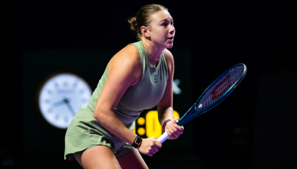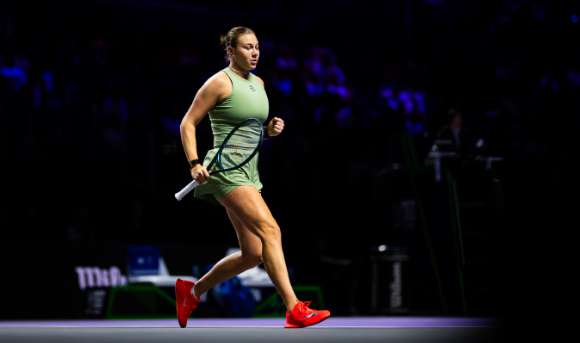 利雅得WTA年终总决赛单打小威廉姆斯组美国德比,4号种子阿尼西莫娃克服落后一盘外加一次破发的不利局面,最终以4-6 6-3 6-2逆转7号种子凯斯,取得总决赛首胜。