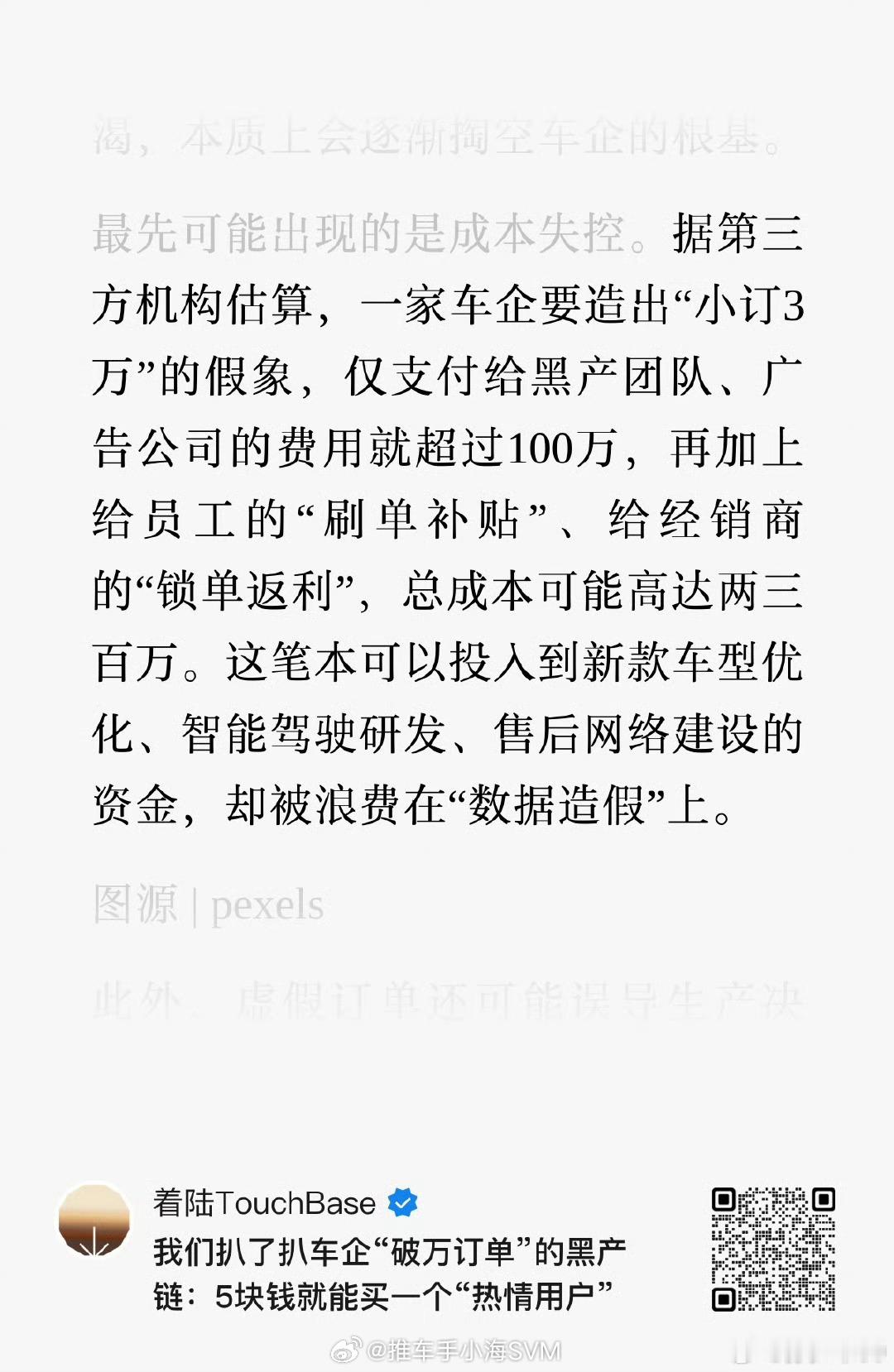 也难怪有车企把钱花在小订造假上了。汽场全开博主曝光车企小订刷单
