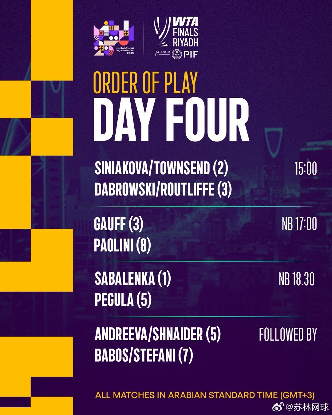 利雅得wta年终总决赛萨巴伦卡vs佩古拉高芙vs保利尼