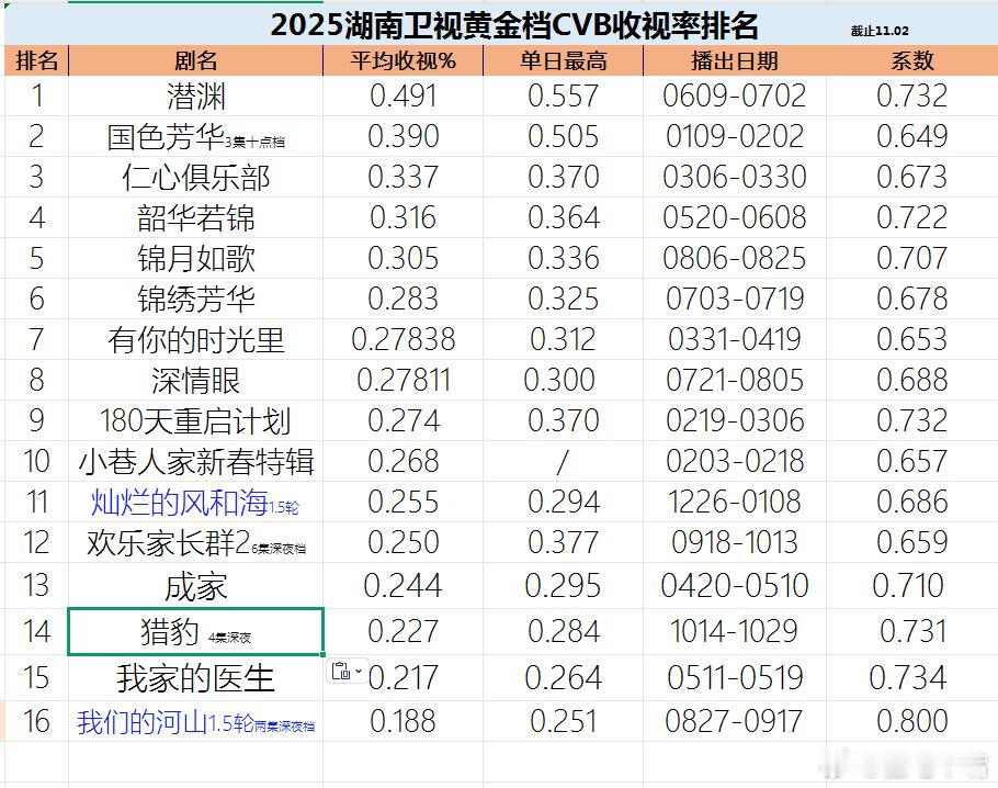 史彭元、杨烁《猎豹》湖南卫视收官战报!来看湖南卫视收视率排名。