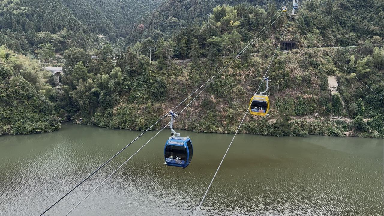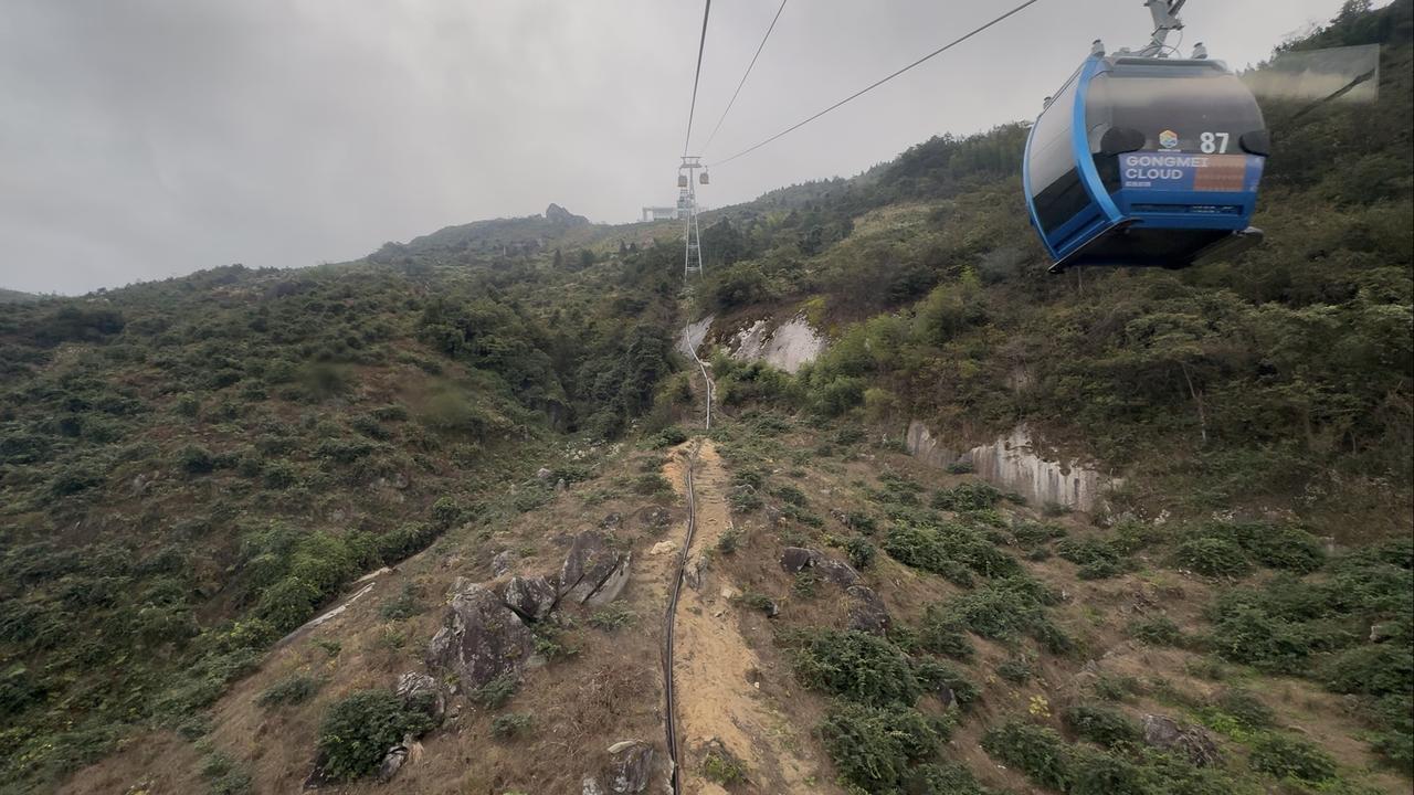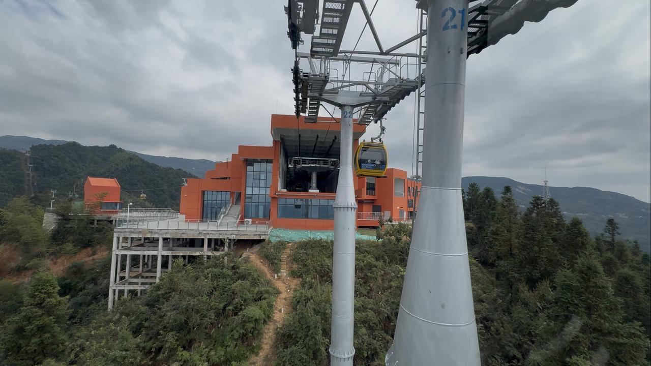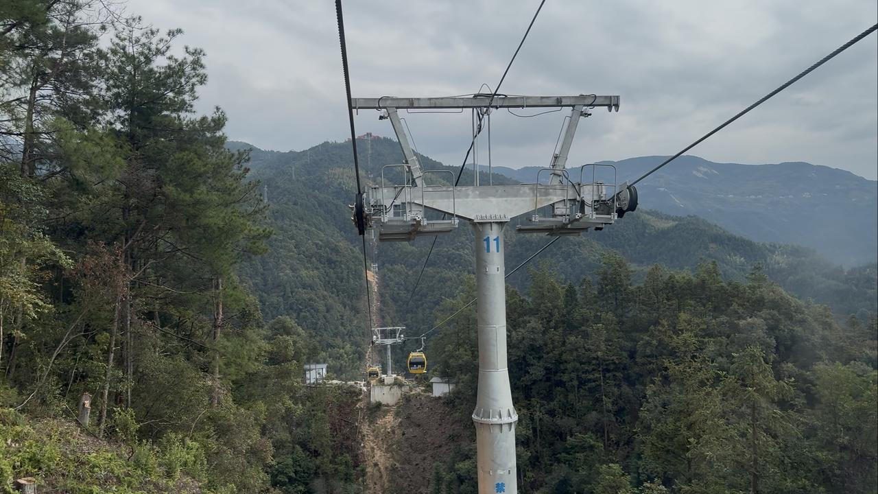 10月27日下午,随2025名评名家湖湘汇网络主题活动采风团抵达怀化溆浦,终于体验了心心念念的雪峰山索道——这条拥有“高山索道世界第一长度”之称的空中走廊,果然名不虚传! 车厢缓缓攀升,脚下是绵延群山,眼前是云海翻涌。全长超过7千米的索道如一条银链,将散落的山峦、幽谷、苗寨一一串联。途经一个个古朴苗寨,木楼叠翠,梯田层叠,偶见炊烟袅袅,仿佛时光在这里慢了下来。 索道不仅是一条交通线,更是一幅流动的风景长卷。穿行在雪峰山的怀抱中,秋色斑斓,林涛阵阵,俯瞰深谷幽邃,远眺峰峦如聚,真正感受到了“一步一景一画卷”的壮丽与诗意。 这一程,既是一次视觉的盛宴,也是一次心灵的洗礼。雪峰山之美,因索道而更易抵达,也因这绵长的高空视角,愈发震撼人心。不虚此行!