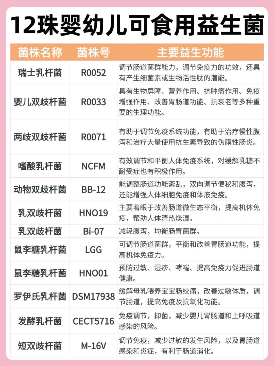 ✅ 要选 “婴幼儿可食用菌株” ,国家批准的只有12种,安全性要有保障!
