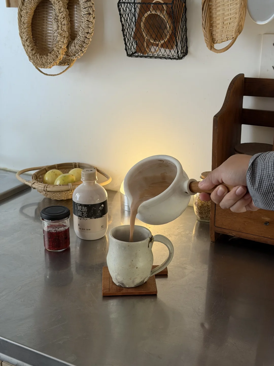 在降温日就想喝热热的呀~ 喜欢秋天透彻的凉意,但是阴雨天的次数也明显变多了, 暖炉搬出来,在吃早饭的时候给自己煮一锅热乎乎的藏茶,喝完满身的暖意 去山姆采购了一周的食材,看到补货上架的喜茶瓶装咸酪藏茶,还是第一次喝藏茶,雅安藏茶的浓厚和茶卡盐的咸,丝滑微咸口感好惊喜 冷喝和热喝都很好喝,尤其加热之后,捧在手上喝一口好幸福 我还用它制作了咸酪藏茶奶冻,干净微咸的小点心吃了也不会有负担 爱上我的厨房在平凡的日子里热爱生活自制美食干净饮食治愈厨房秋天里的第一杯奶茶喜茶藏茶喜茶咸酪藏茶喜茶瓶装