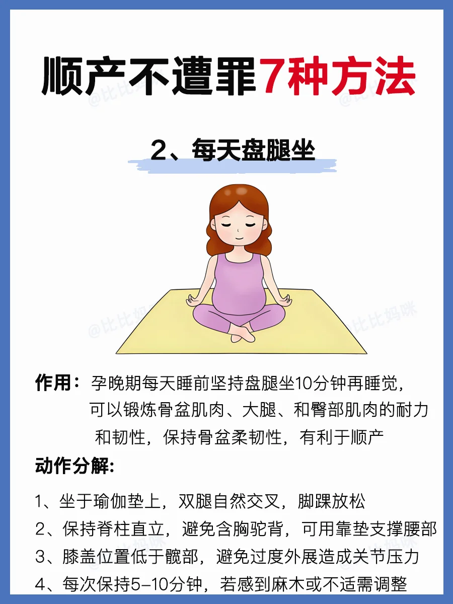 打算顺产的姐妹们,要想顺产不撕裂不侧切,这7个超快顺产的方法要知道,特别是孕晚期的姐妹,千万别偷懒,有空可以练起来了~ · ⭕️本文内容包括: 1⃣️孕期做凯格尔运动 2⃣️每天盘腿坐一会 3⃣️适当做下蹲运动 4⃣️坐瑜伽球 5⃣️练习拉玛泽呼吸法 6⃣️孕期控制体重 7⃣️每天散步30分钟 · 愿所有孕期的准妈妈们都能超快顺产,无侧切无撕裂~