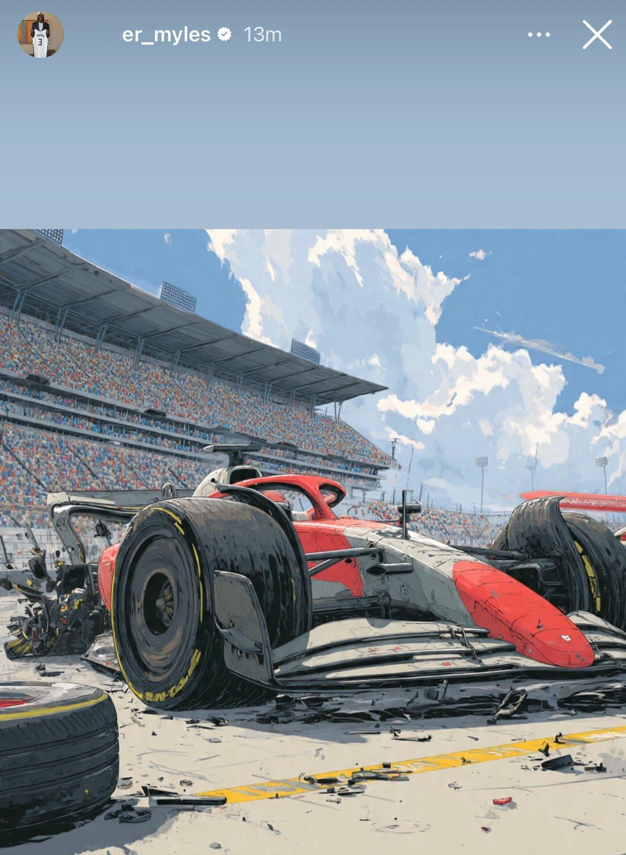 ☞特纳发布了这条动态后,随后删除了☞印第安纳的赛车很有名,但图里的赛车后轮已经损