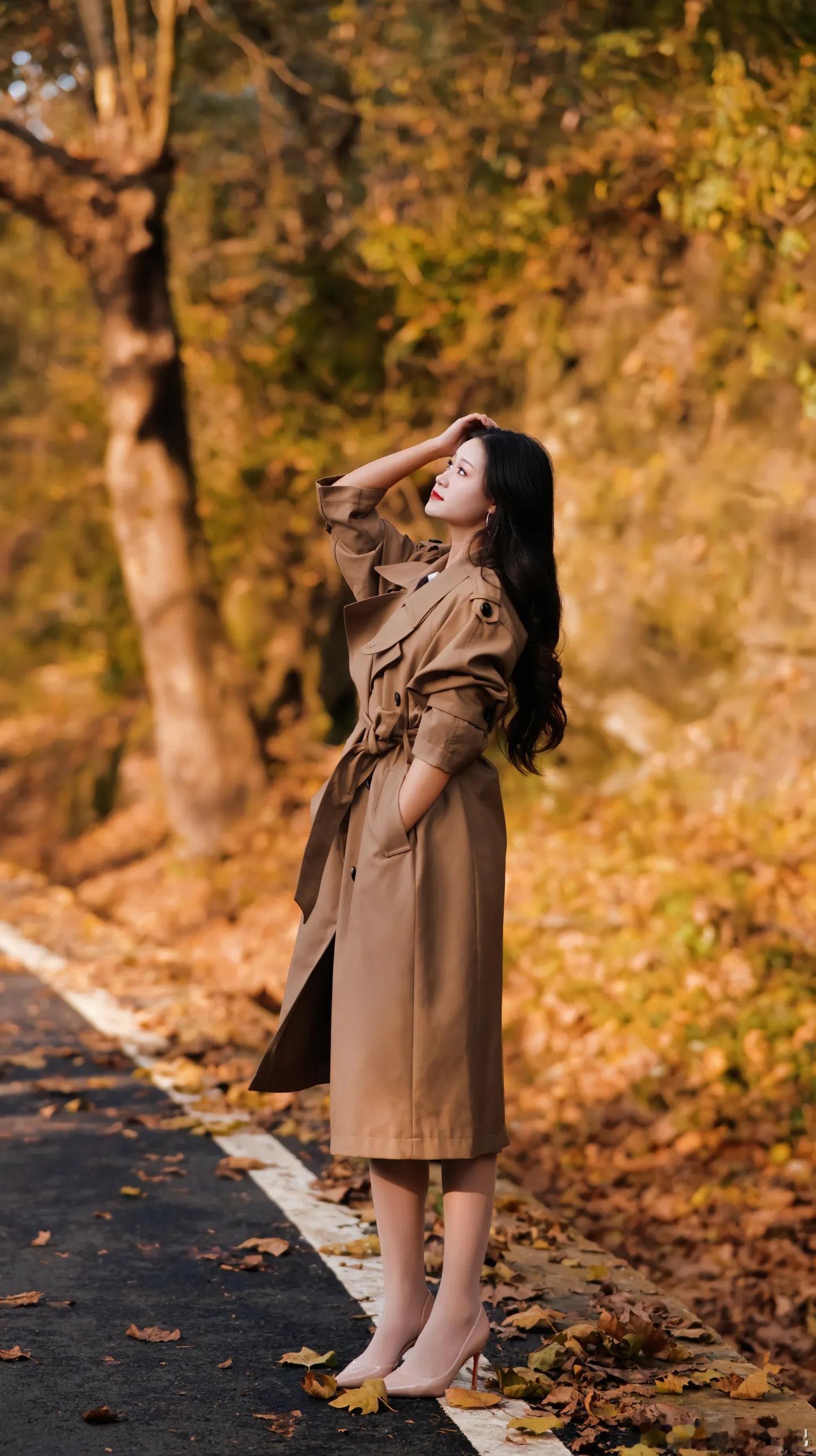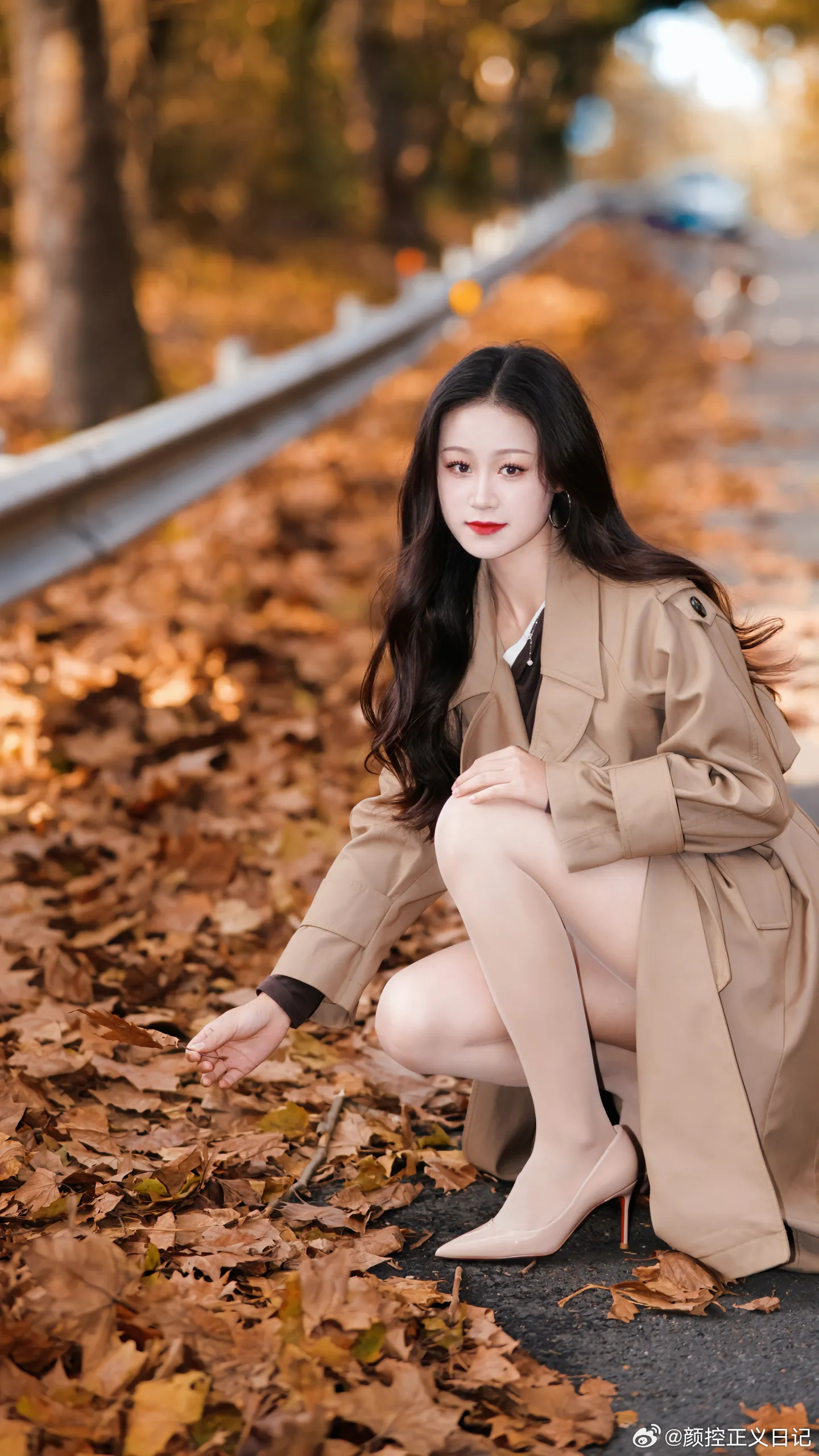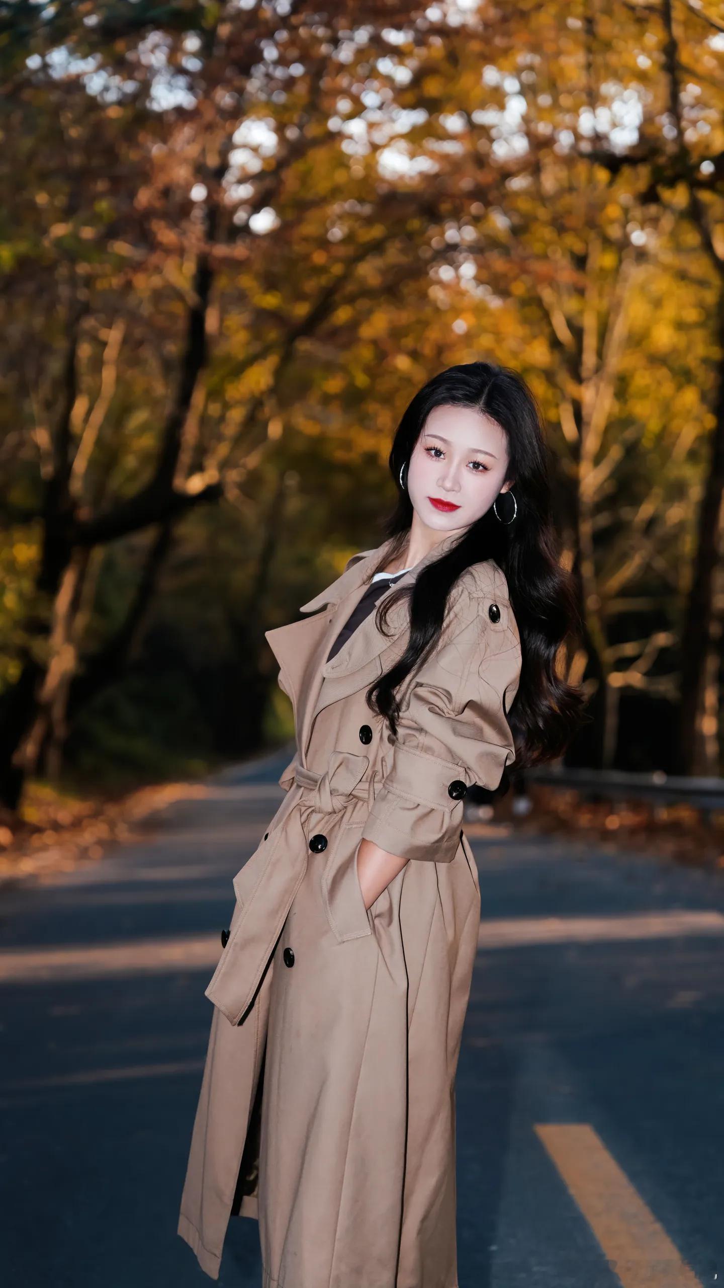 今日穿搭[超话] 适合金秋的风衣美女精彩人像[超话]