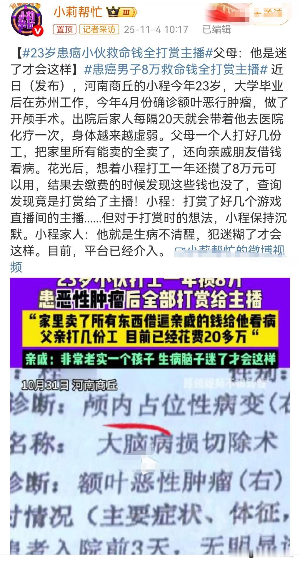 这真的是太悲哀了。 2025年9月,23岁患癌小伙救命钱全打赏主播,打赏给游戏